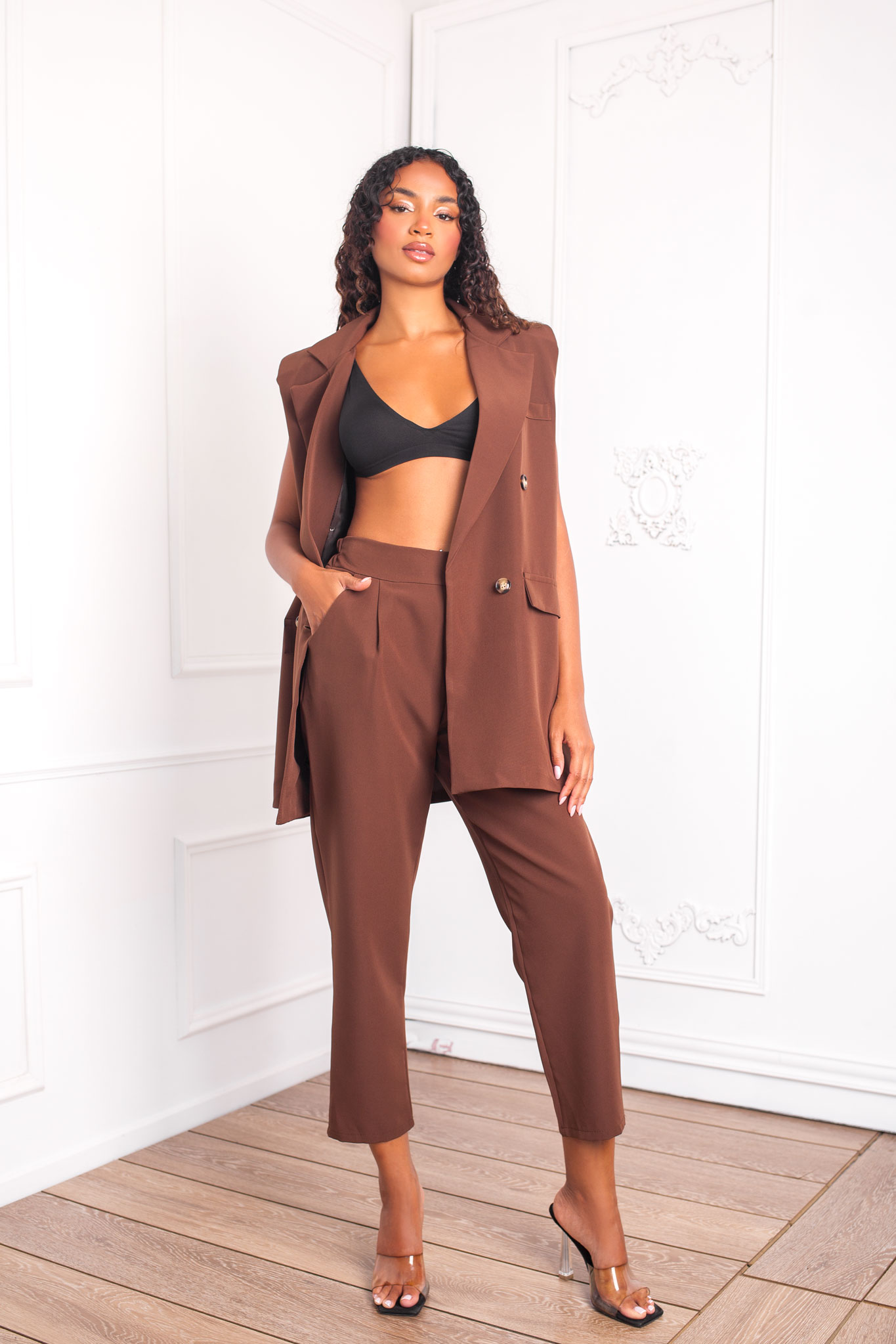 Infectσετ γιλέκο-παντελόνι καφέ