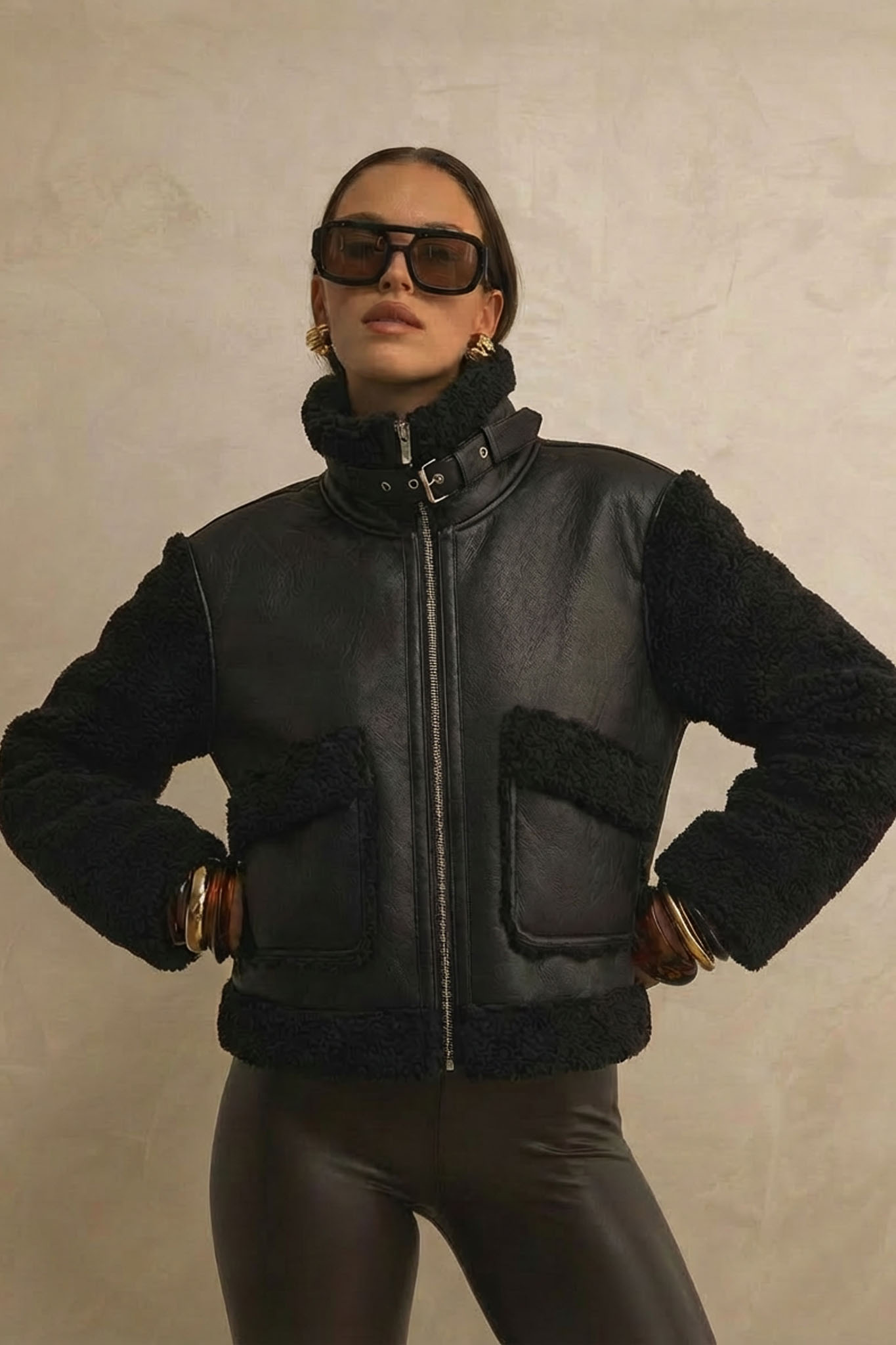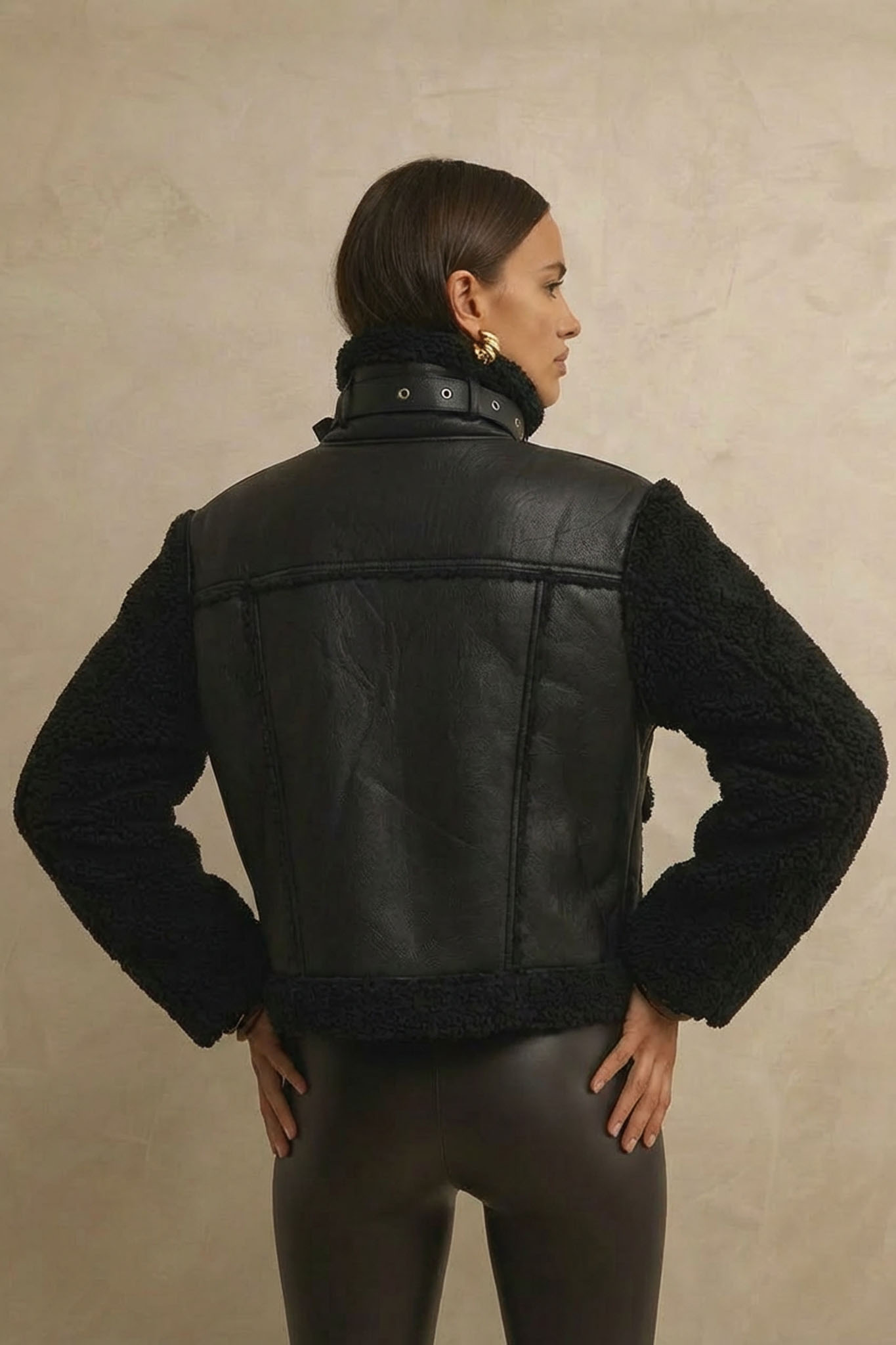 Jadiraτζάκετ δερματίνης με γούνα μαύρο
