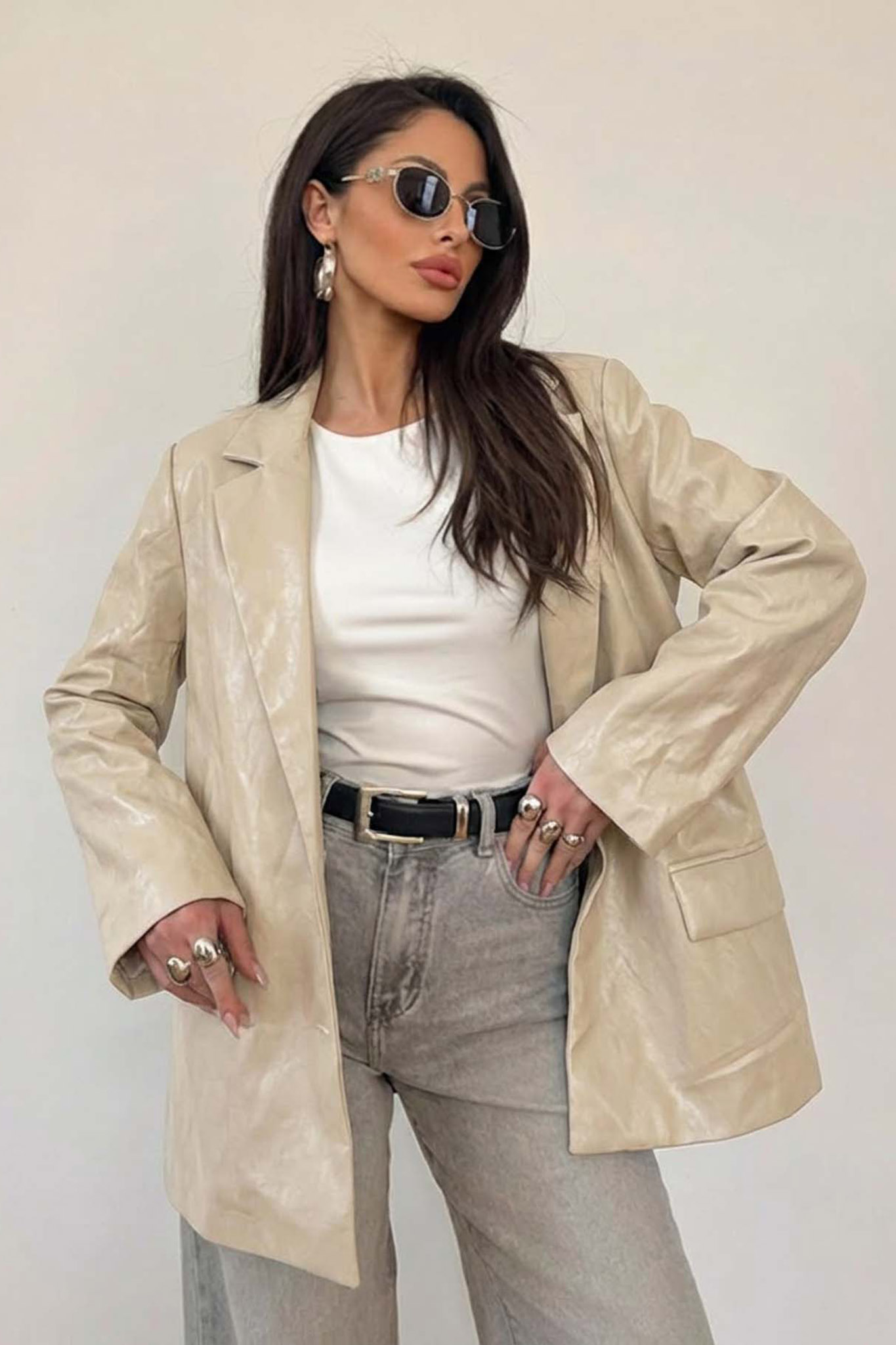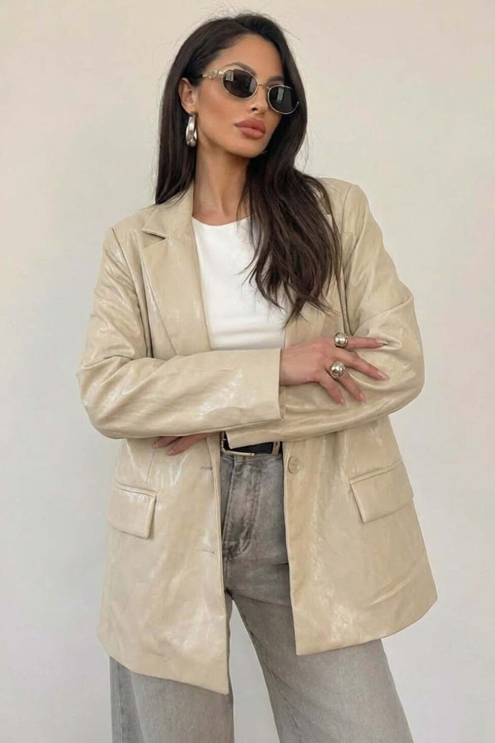 Jaineoversized σακάκι με όψη δέρματος εκρού