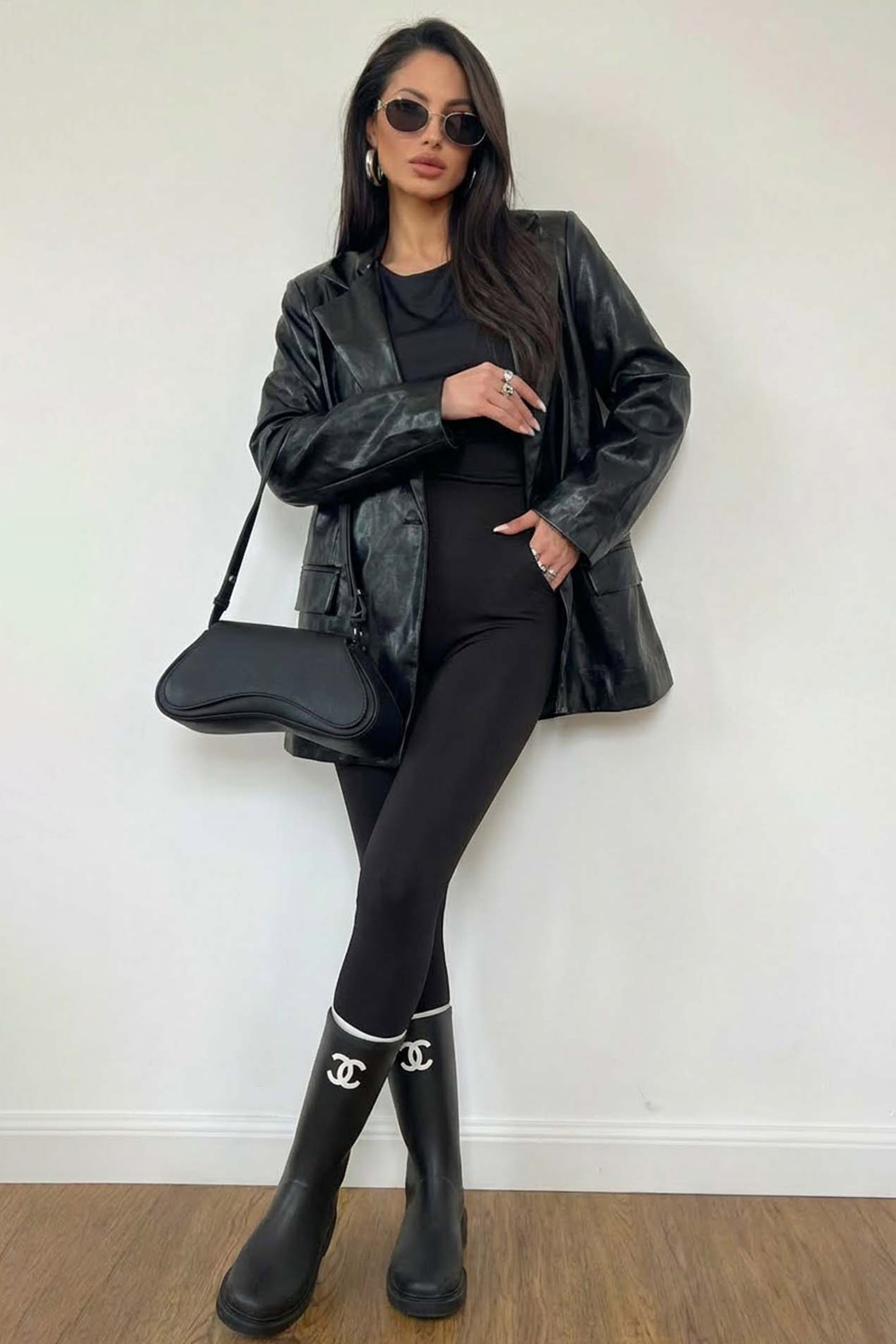 Jaineoversized σακάκι με όψη δέρματος μαύρο