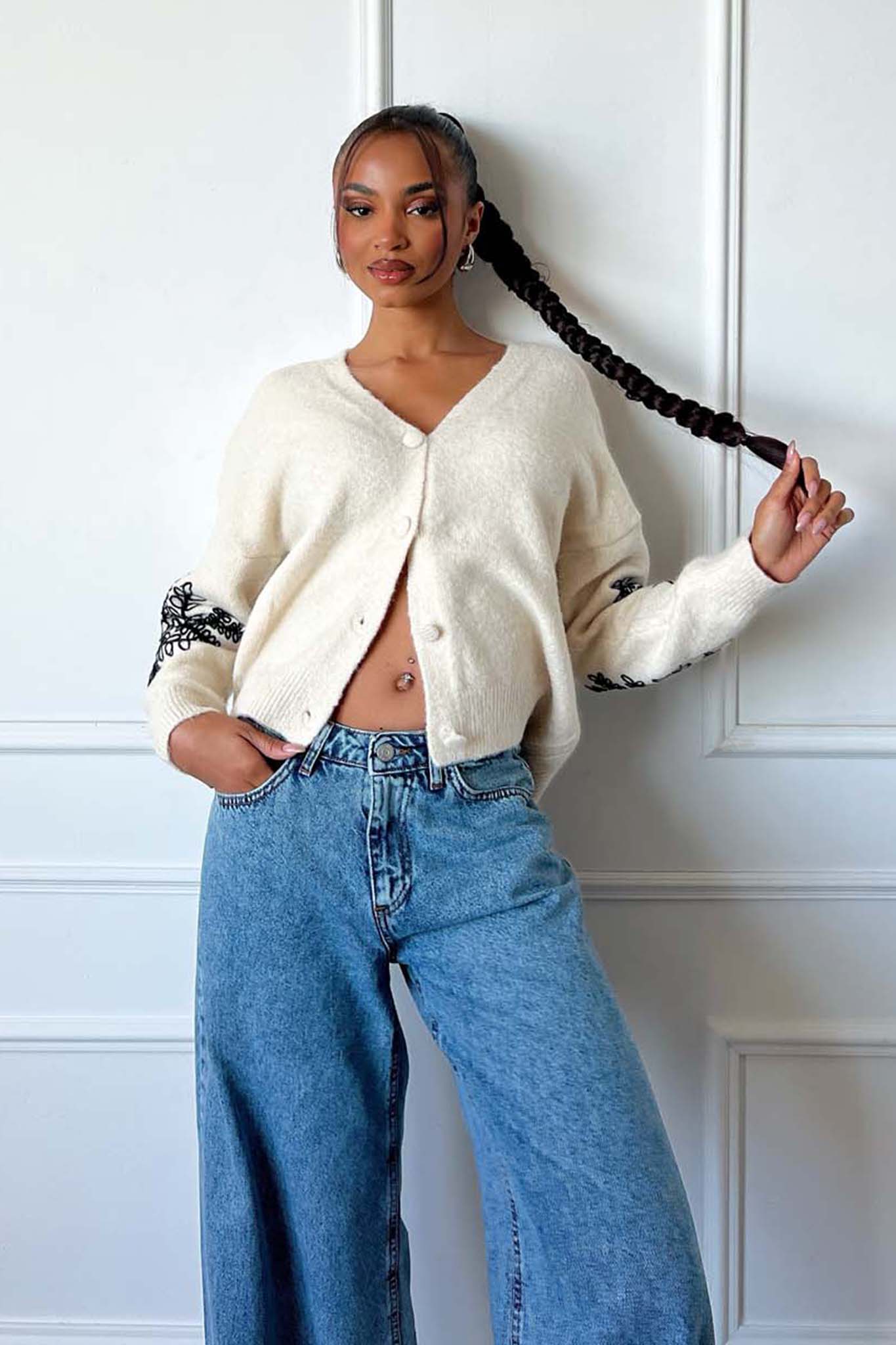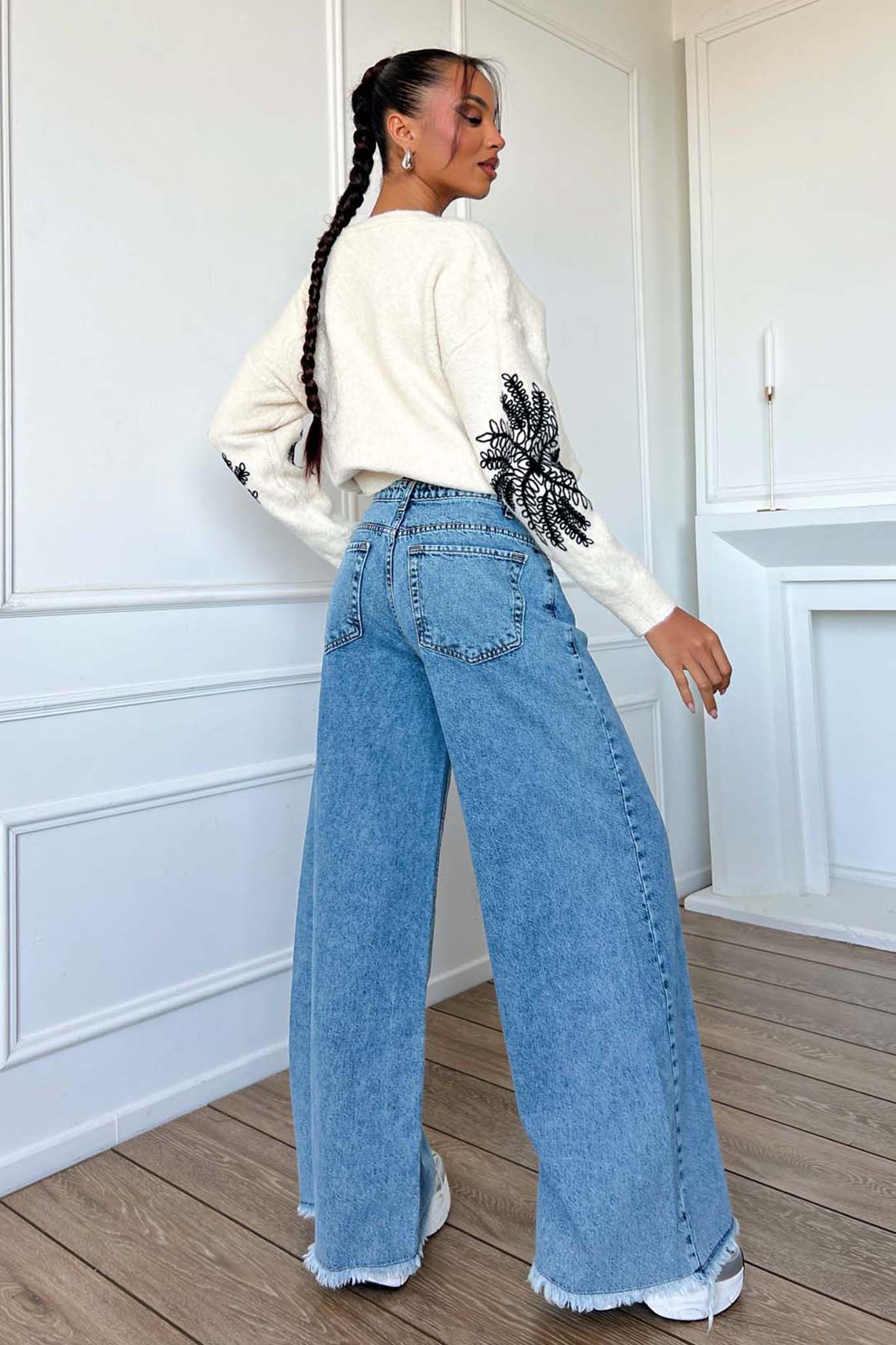 Τζιν παντελόνι σε άνετη γραμμή και ιδιαίτερο τελείωμα.