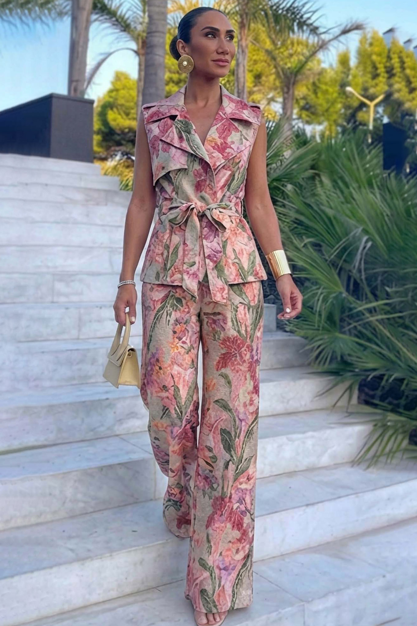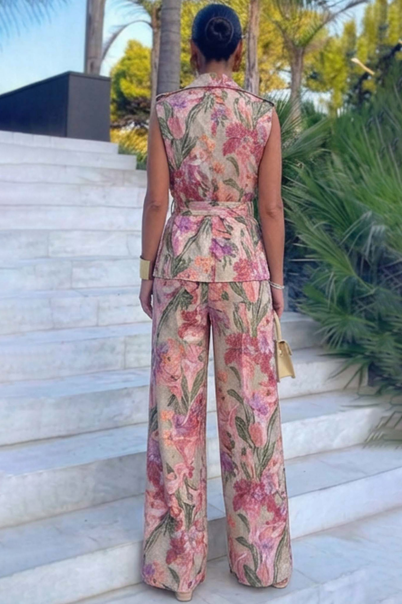 Jasmelσετ γιλέκο παντελόνι φλοράλ ροζ