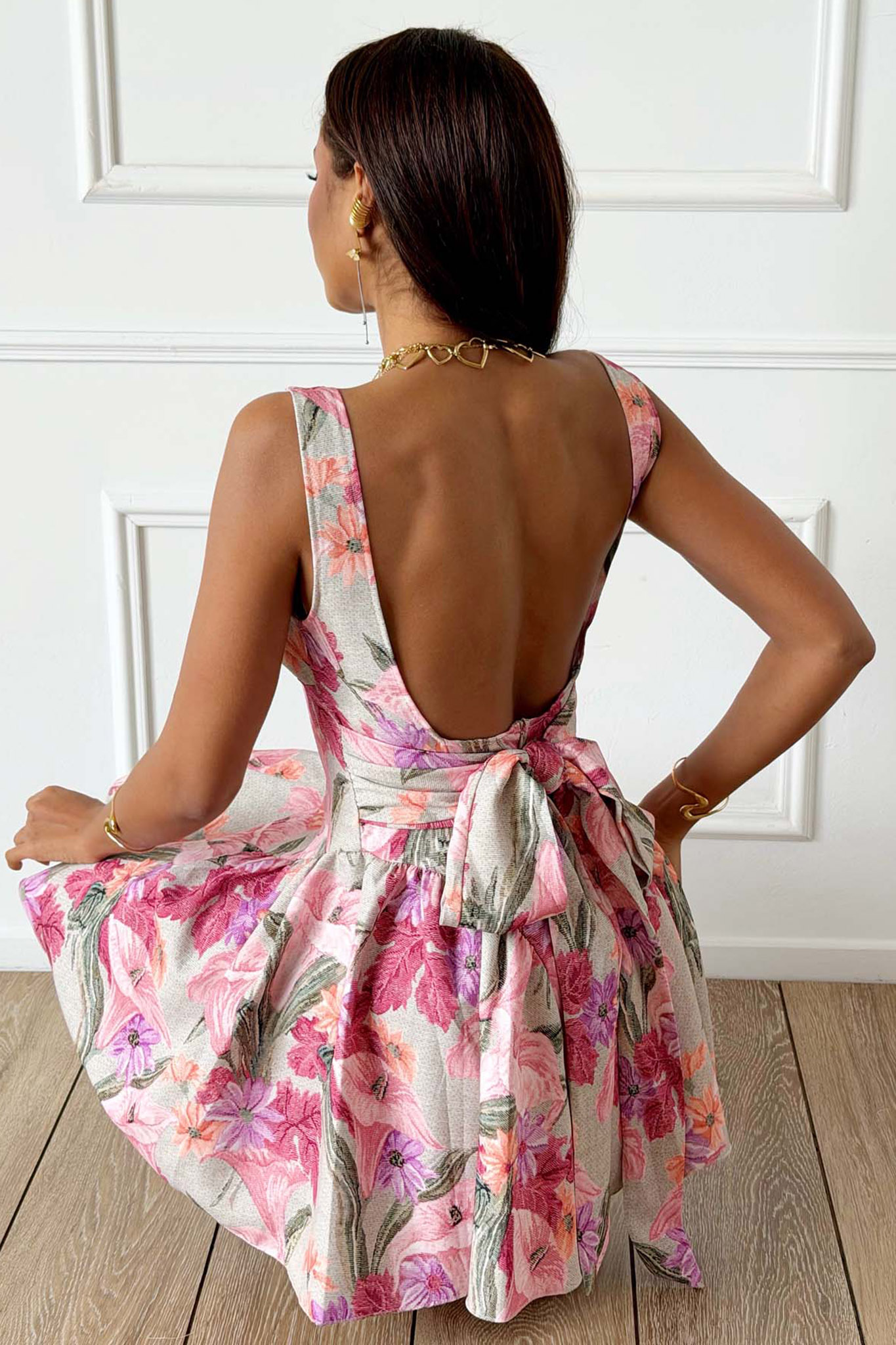 Jeldaμίνι φόρεμα φλοράλ μπεζ