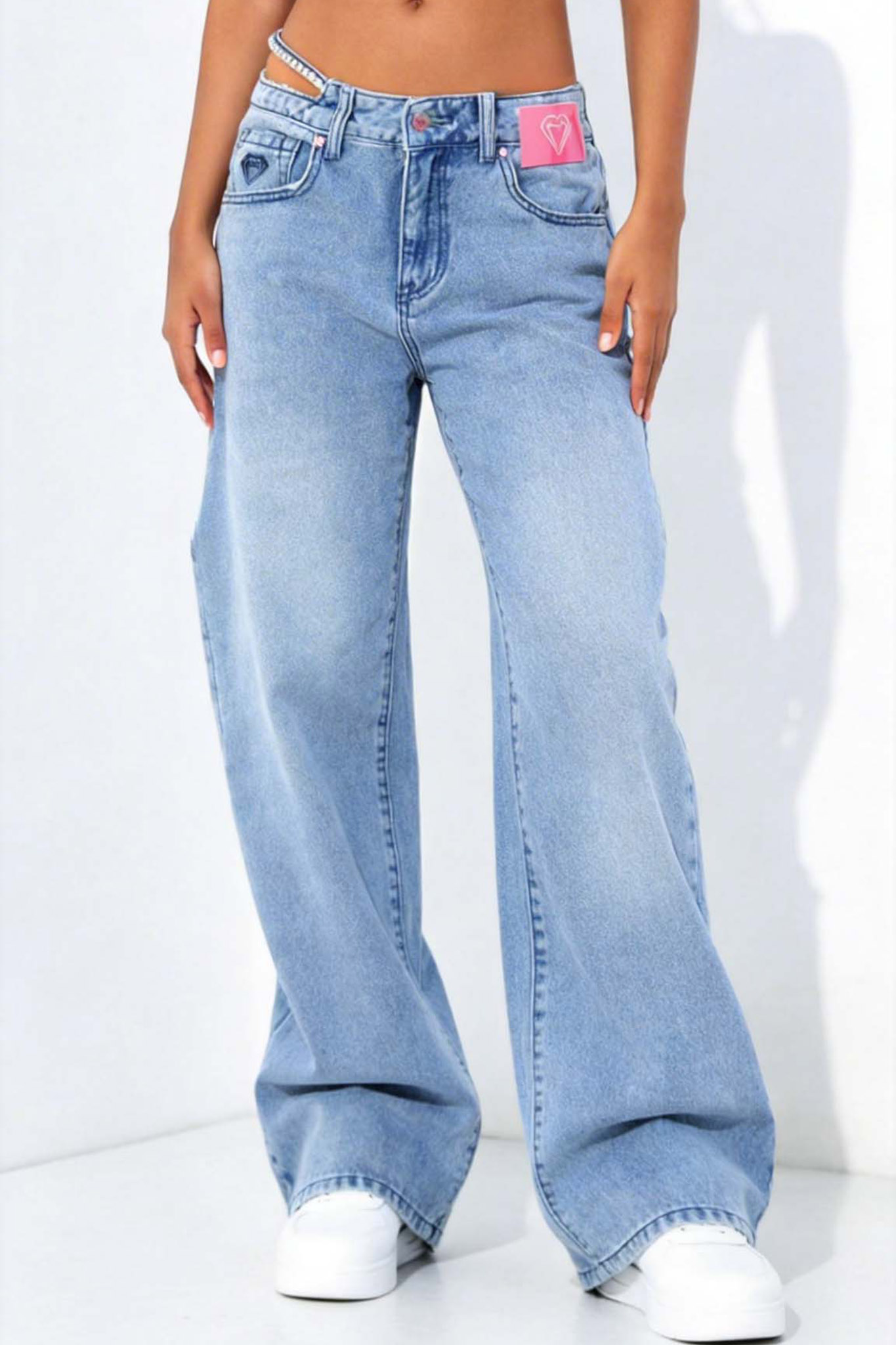 τζιν παντελόνι χαμηλώμεσο και φαρδία γραμμή.