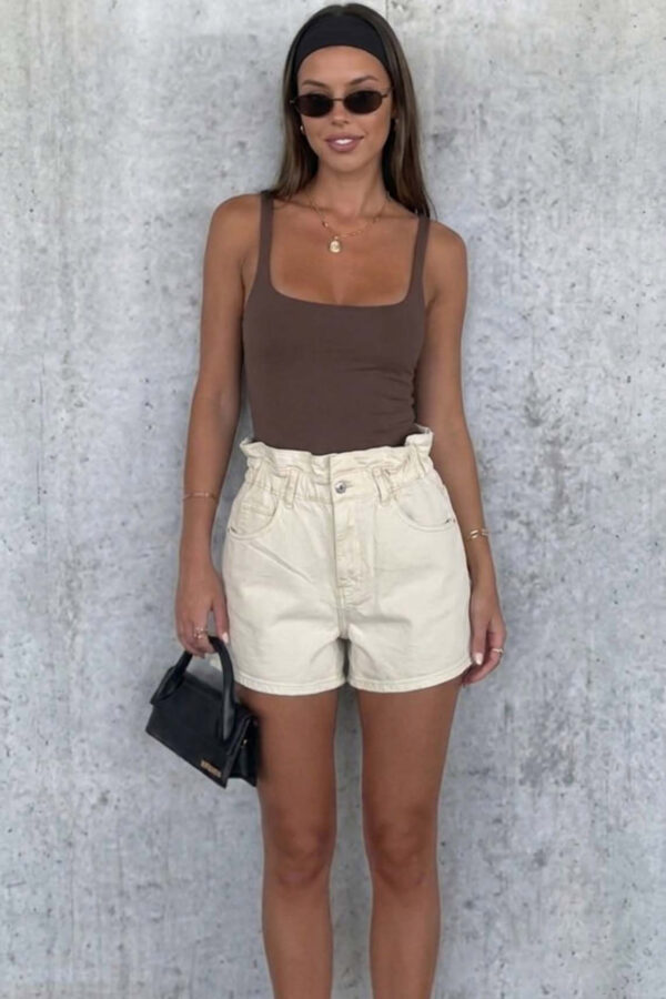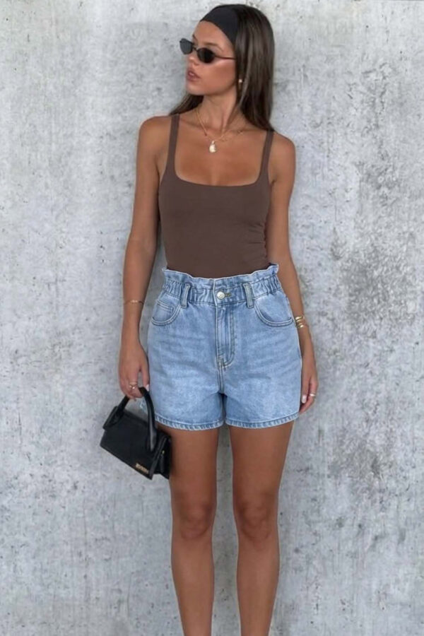 Tζιν που έχει ψηλή μέση και φαρδιά, ίσια γραμμή που κολακεύει τη σιλουέτα. Κατασκευασμένο από ανθεκτικό denim, διαθέτει κλασικό σχέδιο και κλείσιμο με φερμουάρ και κουμπί. Η πλούσια καφέ απόχρωση προσδίδει μια αίσθηση ζεστασιάς και πολυτέλειας, συνδυάζοντας τέλεια με ουδέτερους τόνους.