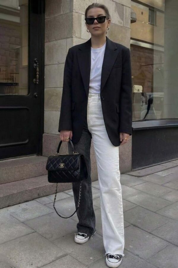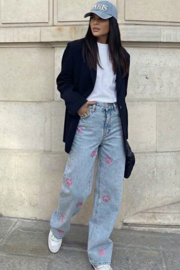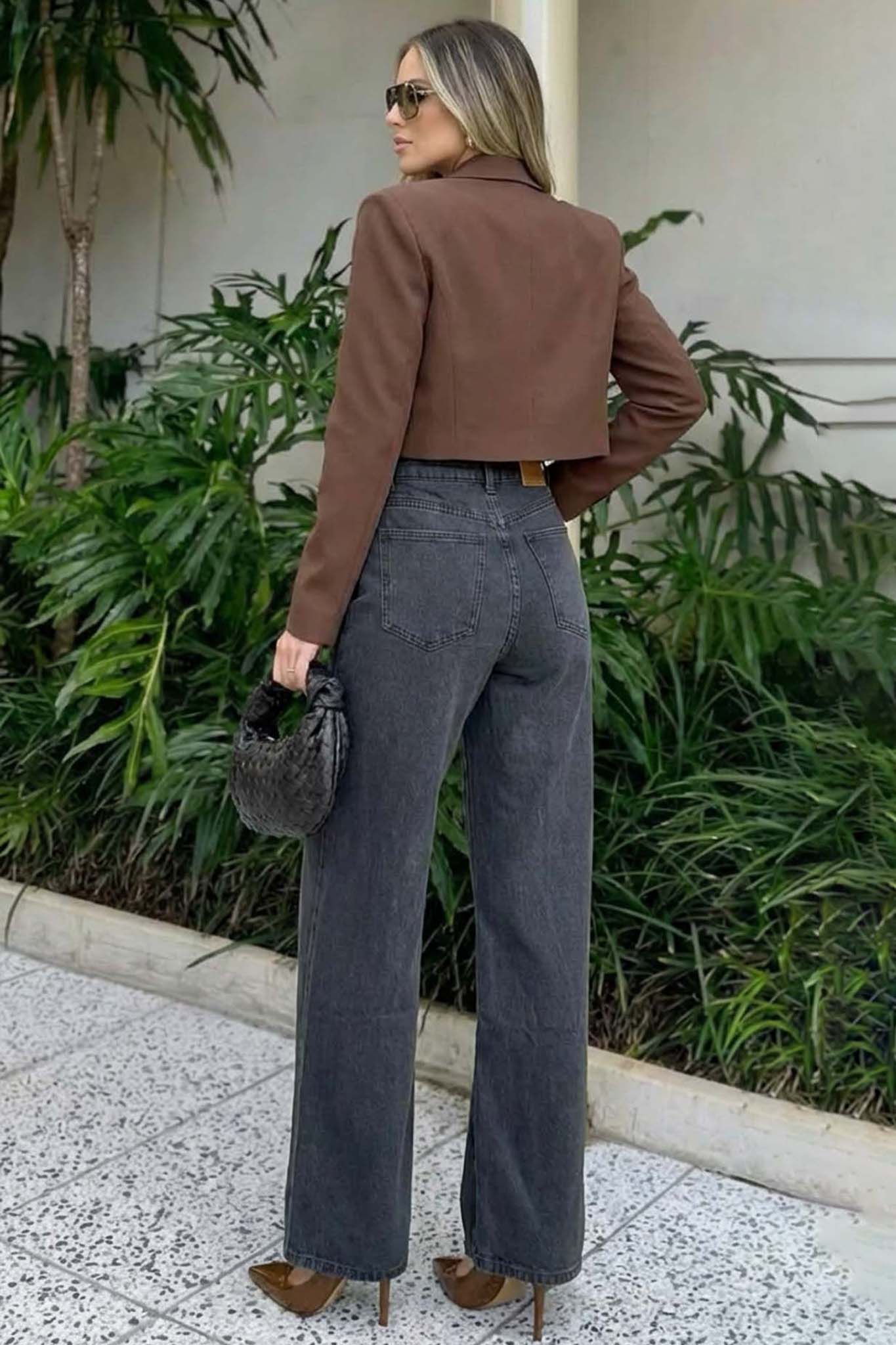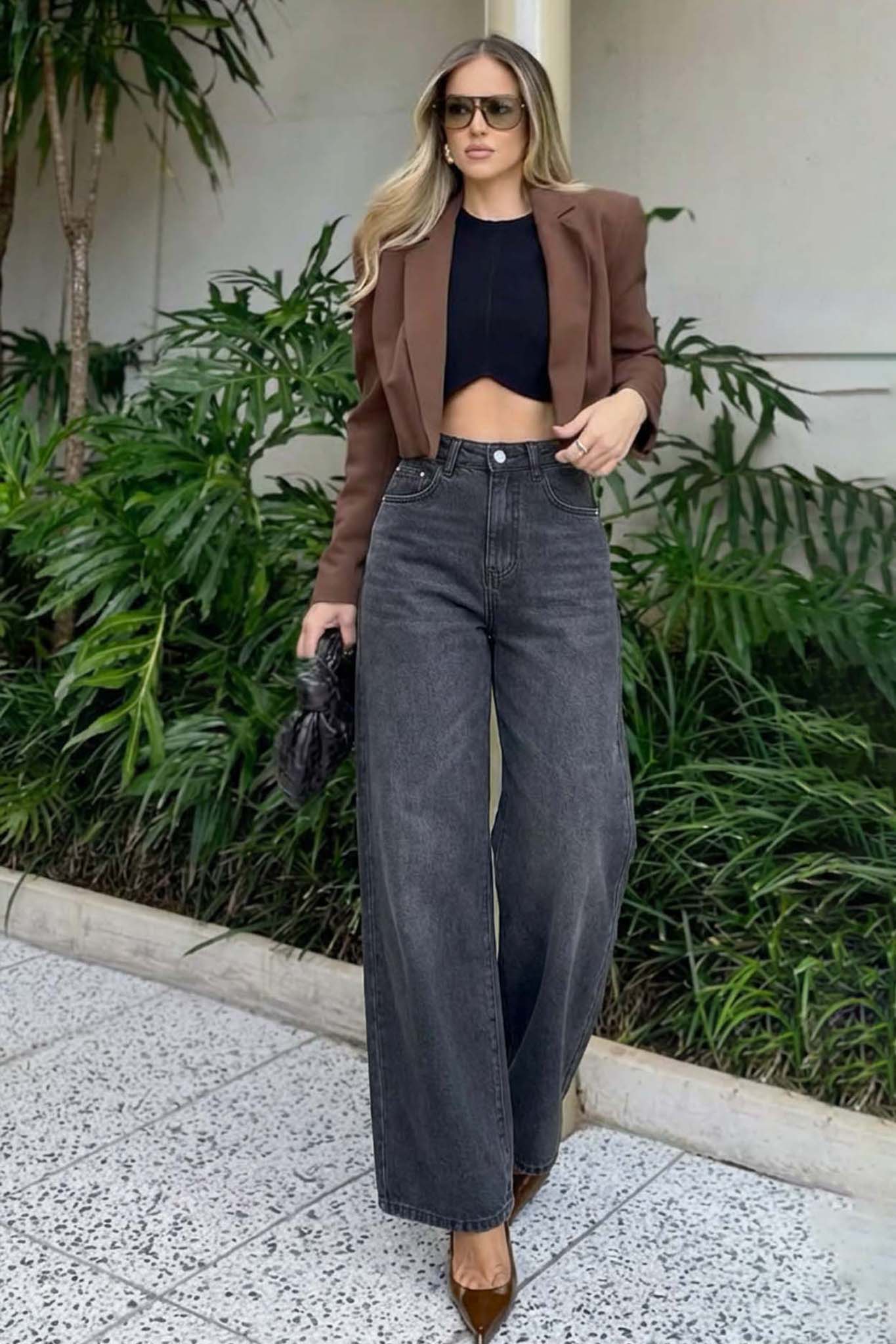 Ψηλόμεσο τζιν με φαρδιά γραμμή προσφέρει άνεση και μοντέρνο στυλ, αγκαλιάζοντας τη μέση και χαρίζοντας μια κολακευτική σιλουέτα. Η σκούρα γκρι/ανθρακί απόχρωση είναι ευκολοσυνδύαστη και ιδανική για όλες τις εποχές.