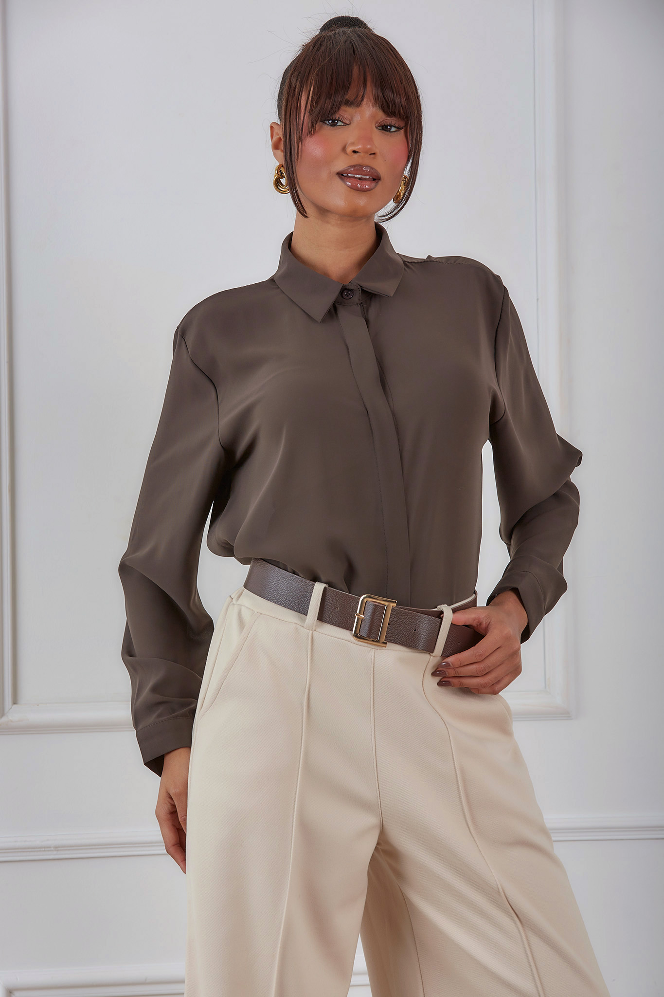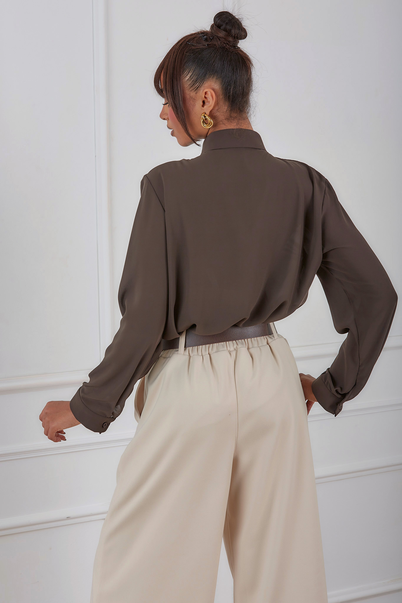 Juicyπουκάμισο ζορζέτα καφέ