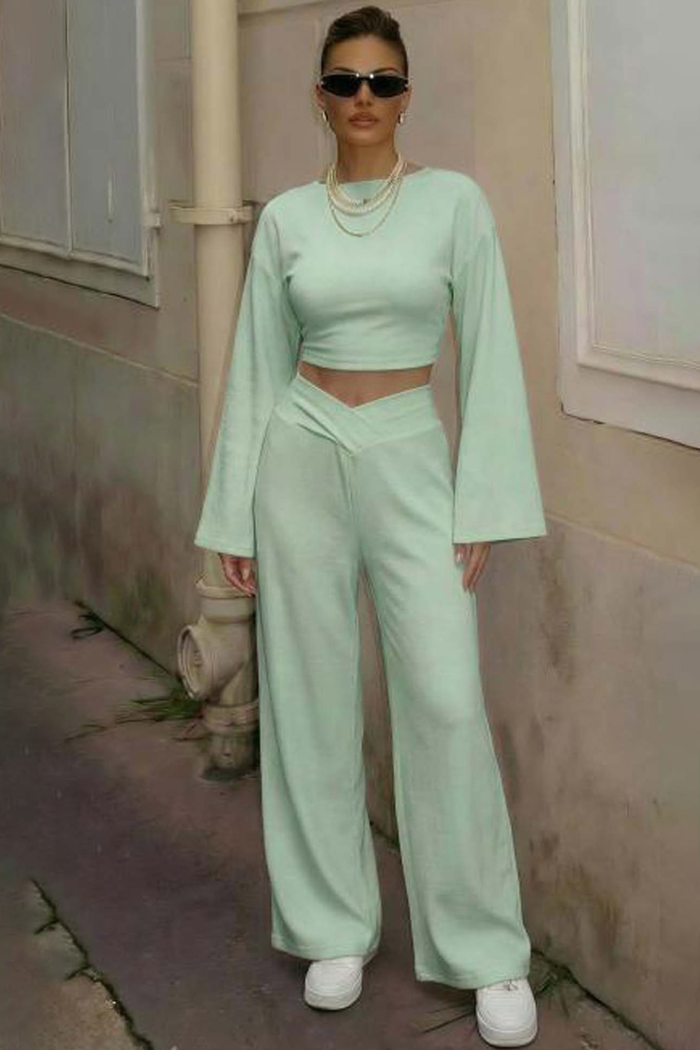 Kaidaσετ φόρμα τοπ παντελόνι φυστικί