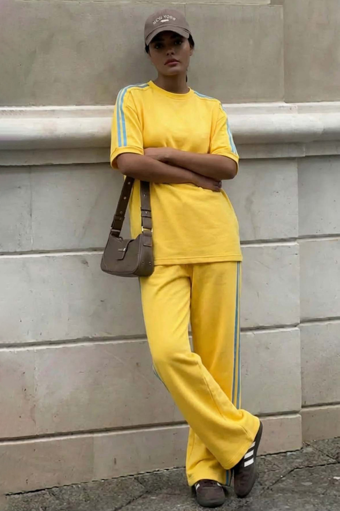 Σετ μπλούζα παντελόνι που προσφέρει ένα ολοκληρωμένο athleisure look με ρίγα στο πλάι και κοντό μανίκι,ιδανικό για άνετες καθημερινές εμφανίσεις με στυλ.. Μπλούζα: μήκος 68cm, στήθος 140cm. Παντελόνι: μήκος 106cm, μέση 72cm
