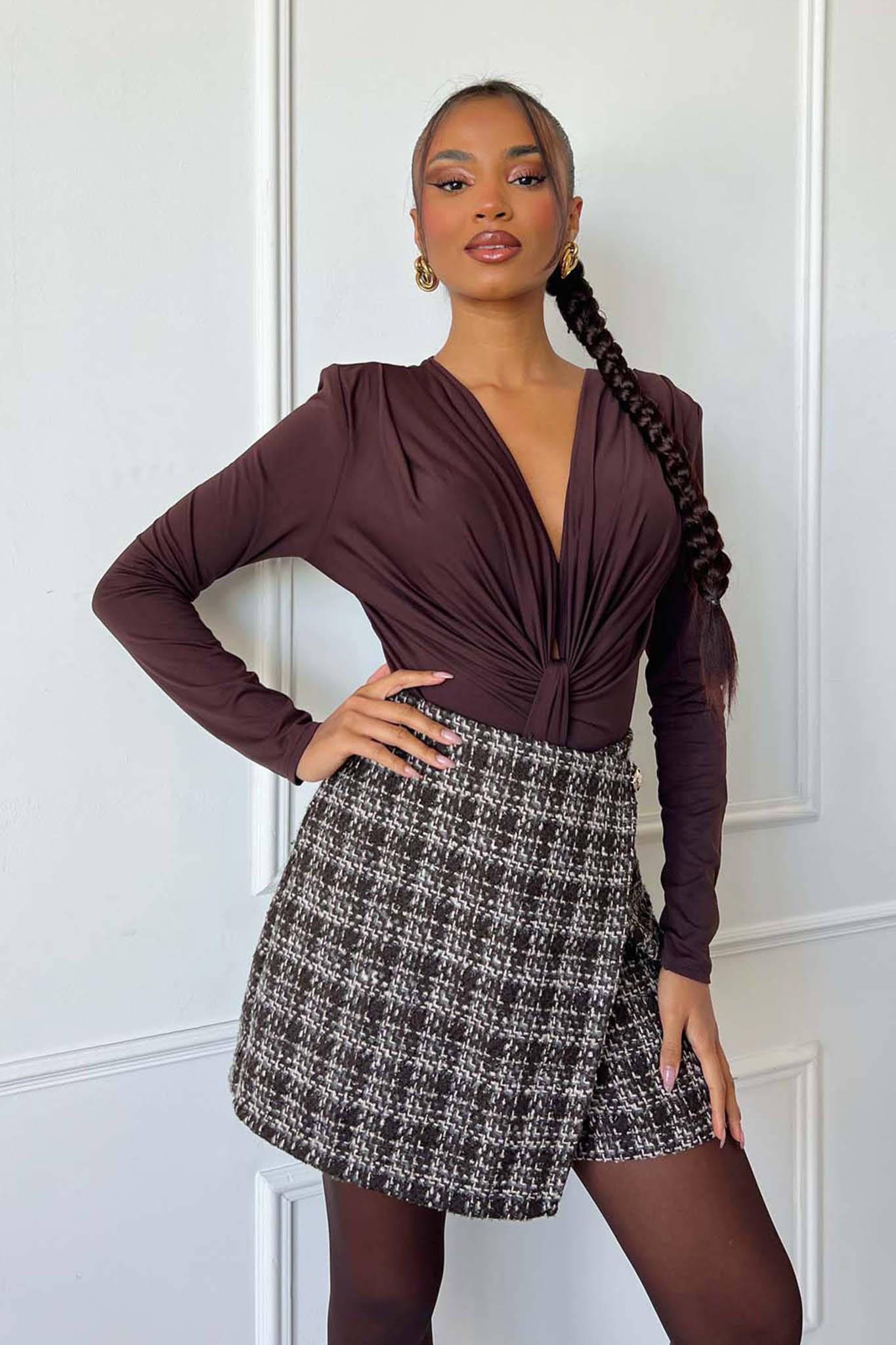 Μακρυμάνικο κορμάκι με βαθύ ντεκολτέ και σούρες. Εξαιρετικά απαλή αίσθηση του υφάσματος. Προσφέρει θηλυκό αποτέλεσμα. Ιδανικό για casual αλλά και πιο βραδινές εμφανίσεις. Μήκος 70cm, στήθος 100cm, μανίκι 62cm.