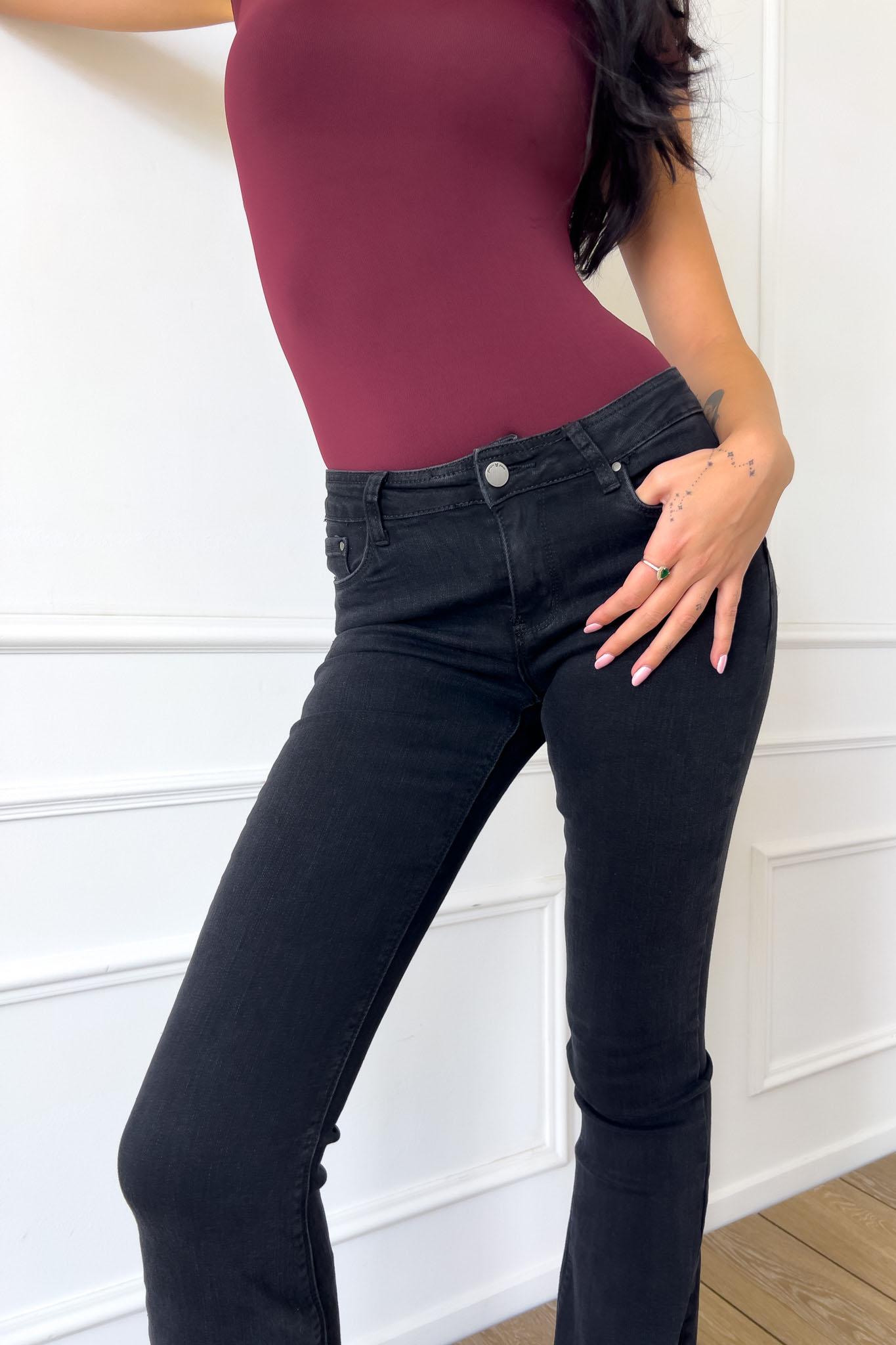 Αναδείξτε το στυλ σας με αυτό το κομψό μαύρο τζιν παντελόνι σε γραμμή καμπάνα. Σχεδιασμένο για να προσφέρει άνεση και εφαρμογή που κολακεύει τη σιλουέτα, είναι ιδανικό για κάθε περίσταση, από casual εμφανίσεις μέχρι πιο επίσημες εξόδους. Συνδυάζεται άψογα με ψηλοτάκουνα πέδιλα ή μποτάκια για ένα ολοκληρωμένο look.