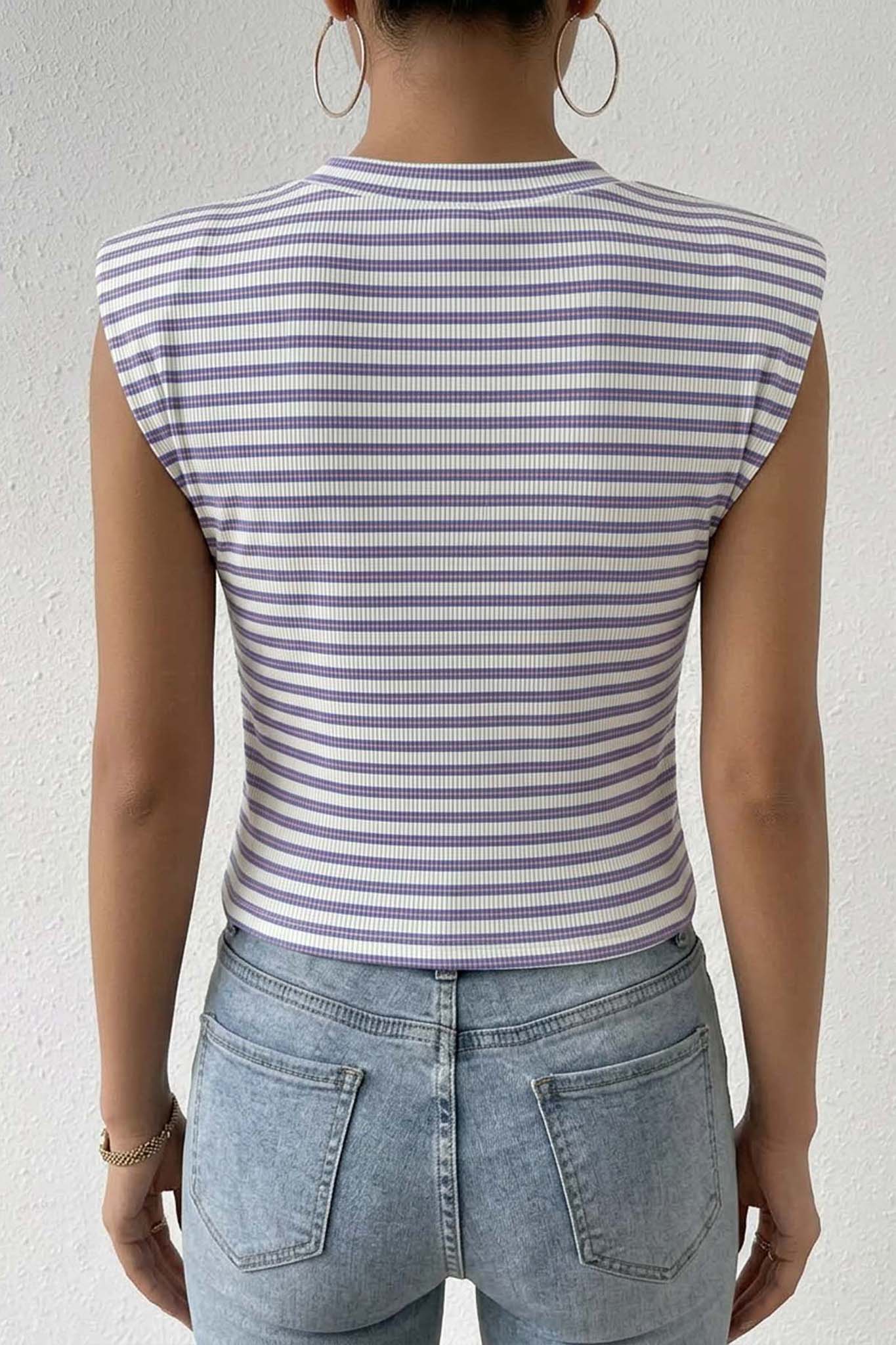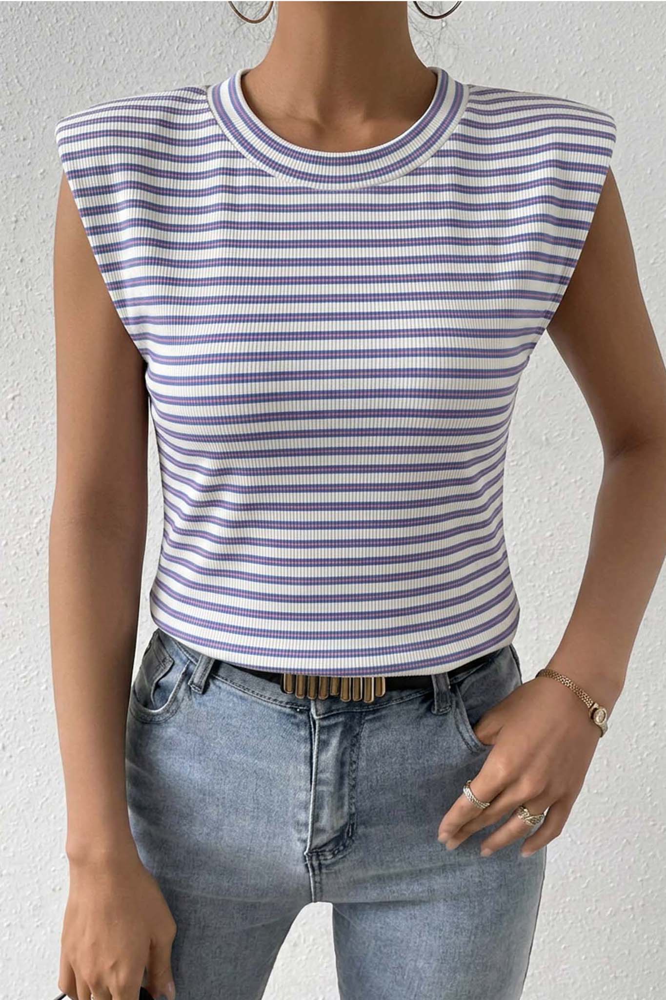 Τοπ αμάνικο με ρίγες σε εφαρμοστή γραμμή με ριγέ σχέδιο για casual και μοντέρνο look. Ιδανικό για καθημερινές εμφανίσεις και εύκολους συνδυασμούς με τζιν ή παντελόνια.