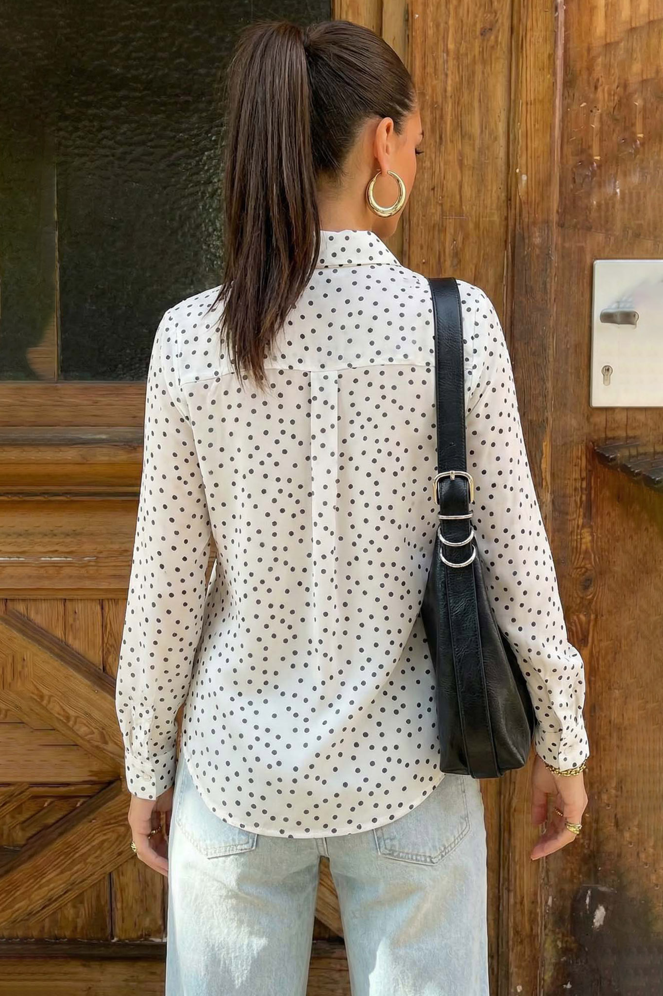 Διαχρονικό λευκό πουκάμισο με κλασικό μαύρο πουά αποτελεί ένα απαραίτητο κομμάτι για κάθε γυναικεία γκαρνταρόμπα. Σχεδιασμένο σε άνετη, μοντέρνα γραμμή, διαθέτει κλασικό γιακά και κουμπιά σε όλο το μήκος του μπροστινού μέρους, προσφέροντας κομψότητα και ευελιξία. Είναι ιδανικό για προσεγμένες εμφανίσεις στο γραφείο αλλά και για χαλαρά casual looks, συνδυασμένο άψογα με το αγαπημένο σας τζιν.