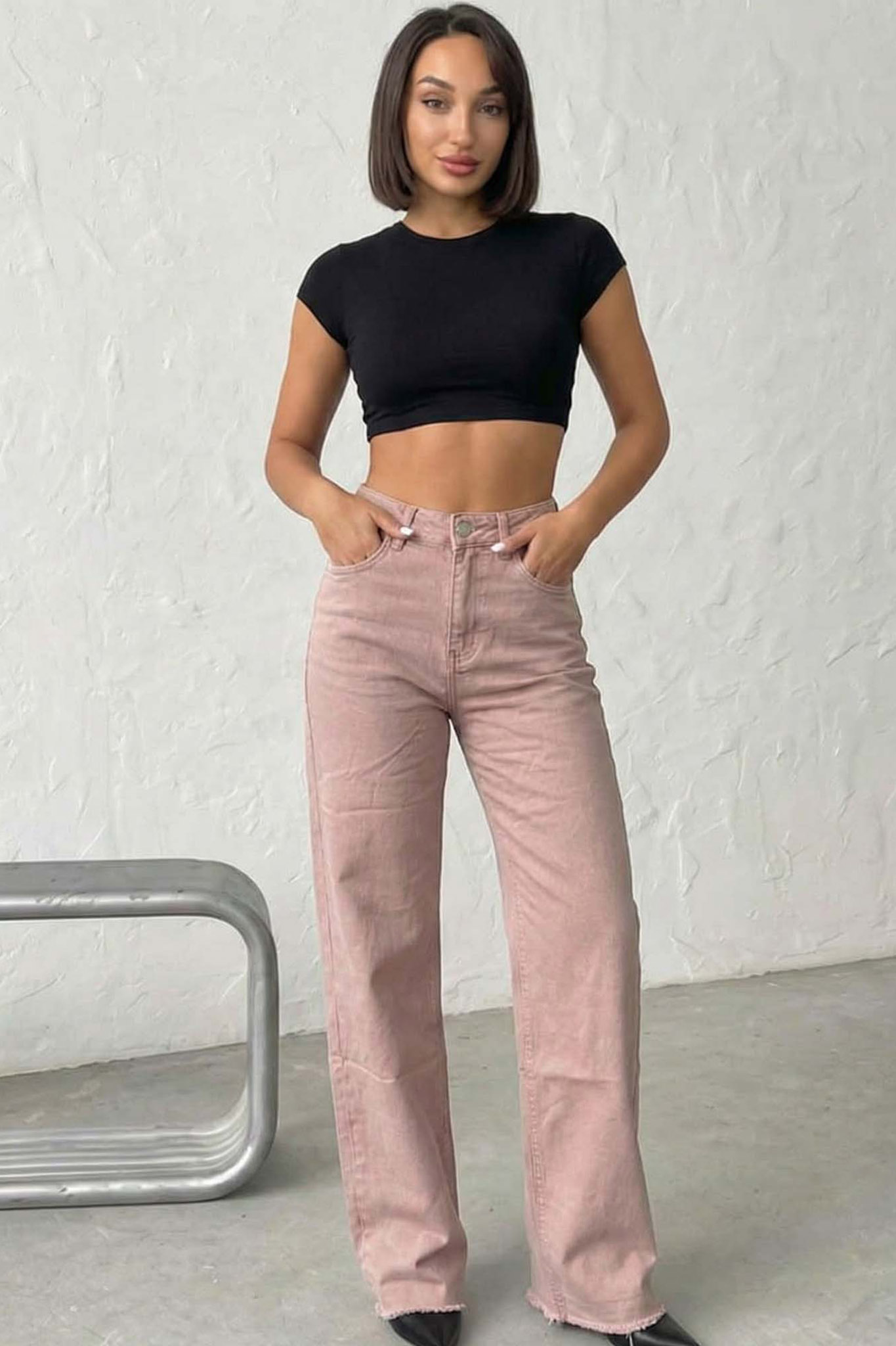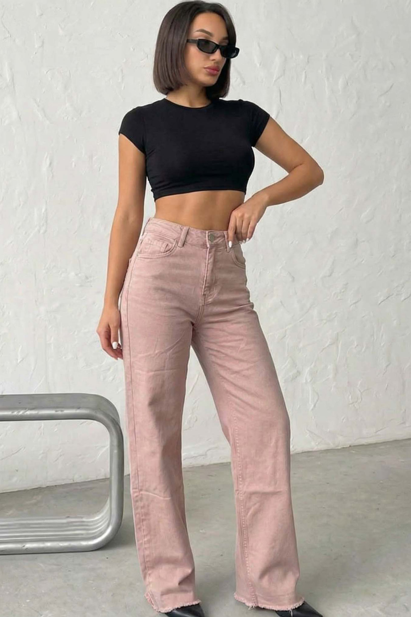 Ψηλόμεσο wide-leg τζιν με άνετη γραμμή και σταθερό ύφασμα εξασφαλίζουν μια μοντέρνα σιλουέτα που κολακεύει, καθιστώντας το ιδανικό για effortless καθημερινές εμφανίσεις.