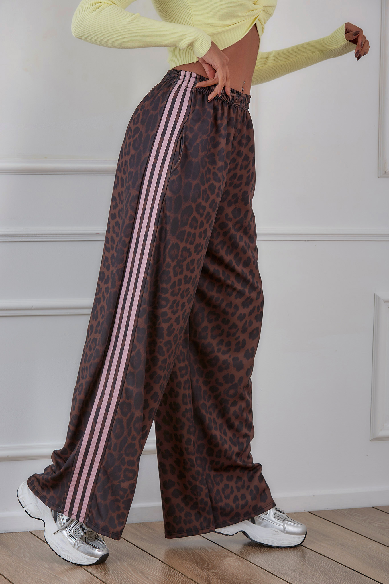 Παντελόνι λεοπάρ με διπλή ρίγα στο πλάι. Διαθέτει λάστιχο στη μέση για πιο άνετη εφαρμογή.