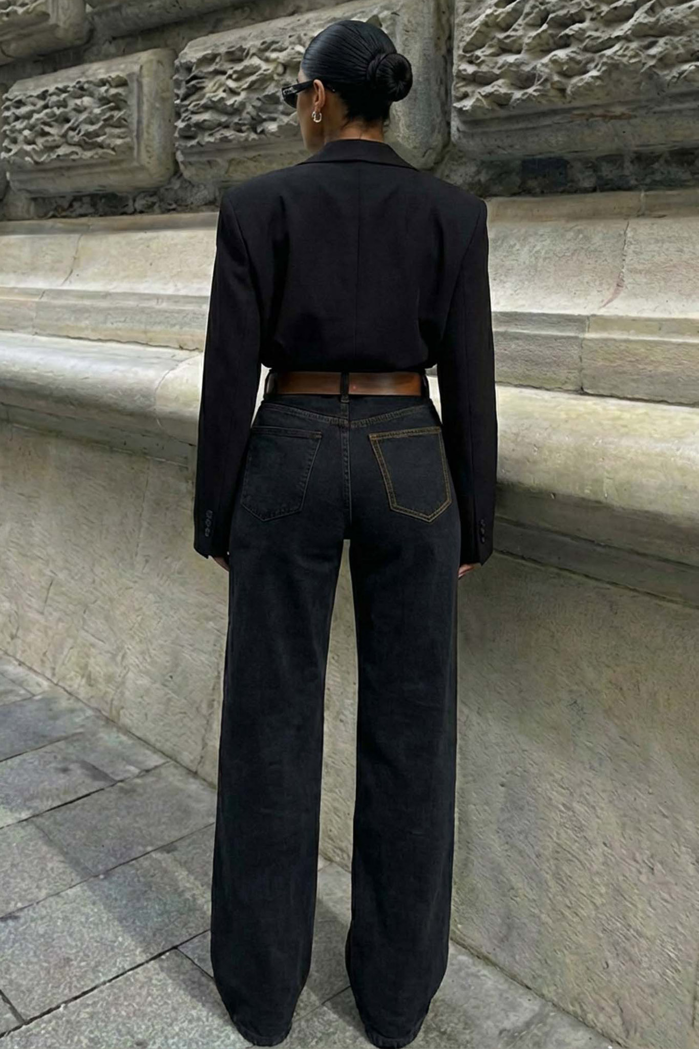 Ψηλόμεσο τζιν που αγκαλιάζει τη σιλουέτα, ενώ η φαρδιά γραμμή που καλύπτει το παπούτσι χαρίζει ύψος και μια επιβλητική κίνηση. Οι αντιθετικές ταμπά ραφές προσθέτουν μια αυθεντική vintage αίσθηση, κάνοντάς το το κεντρικό κομμάτι κάθε urban εμφάνισης.