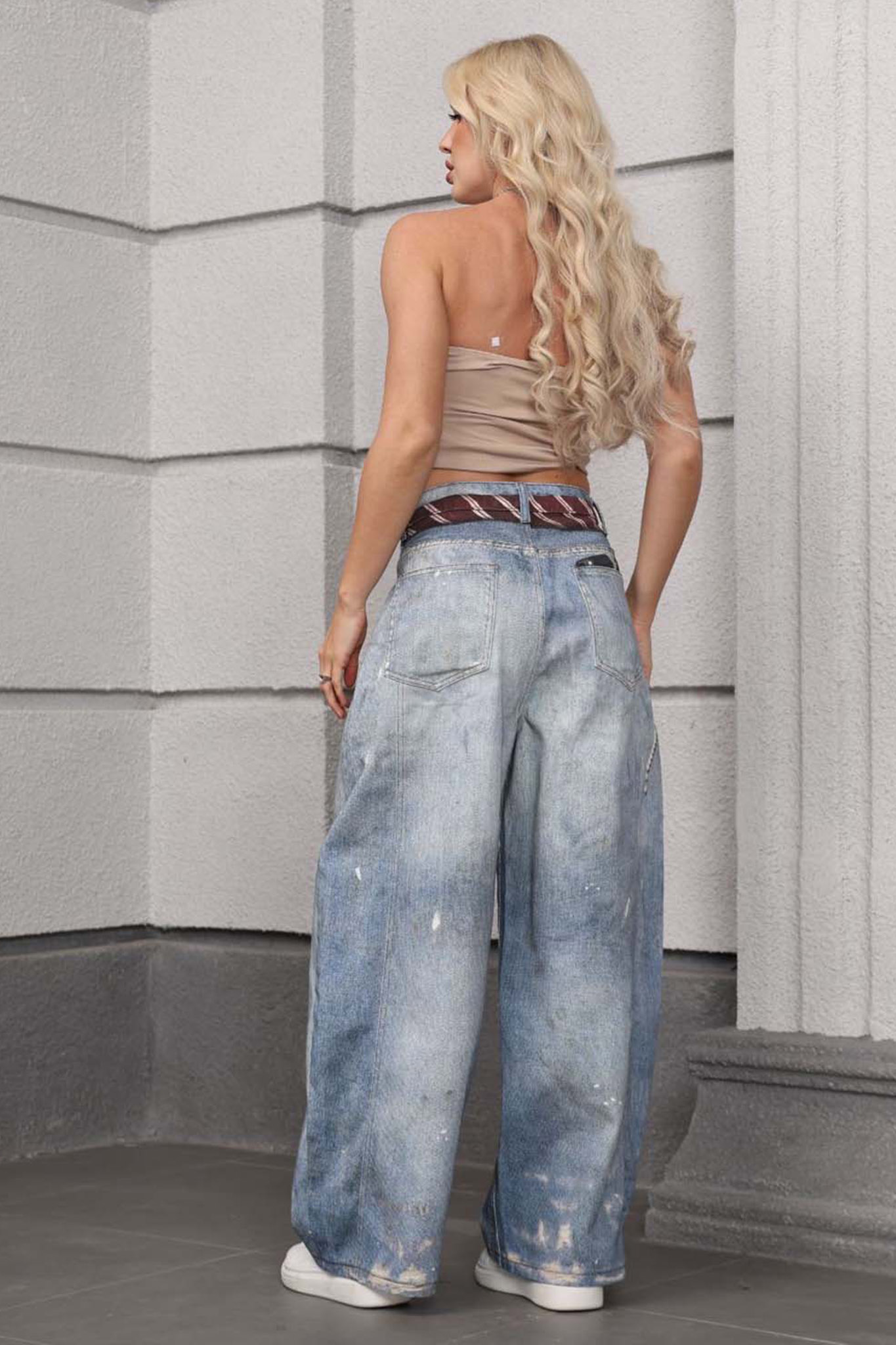 Τζιν παντελόνι με ιδιαίτερο print στο σημείο της ζώνης.