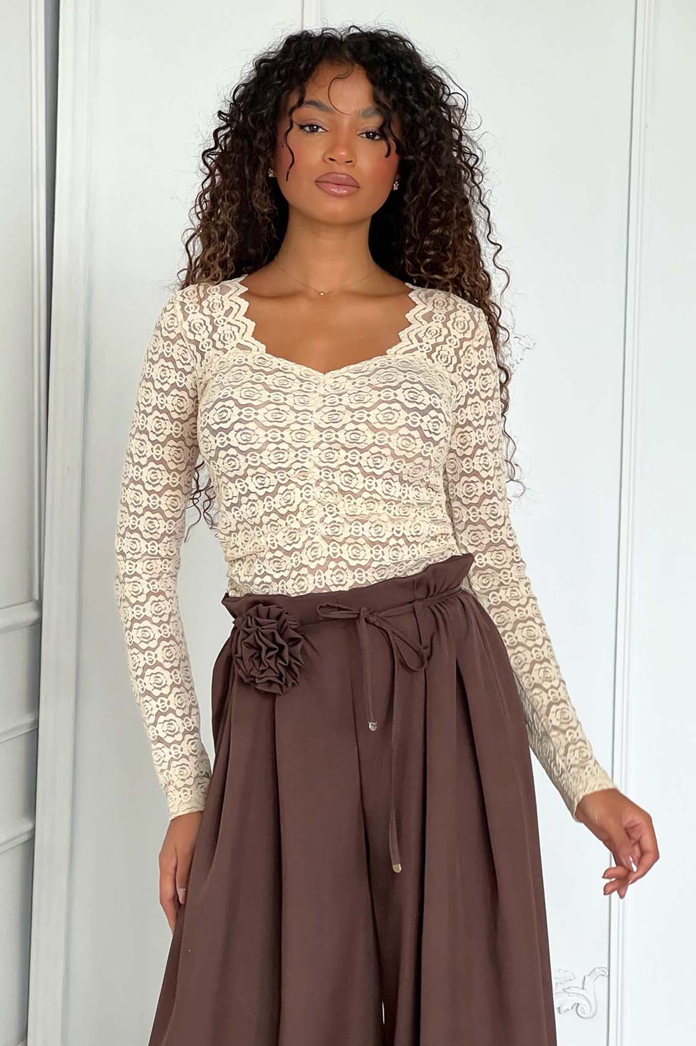 Lauraμπλούζα δαντέλα μπεζ