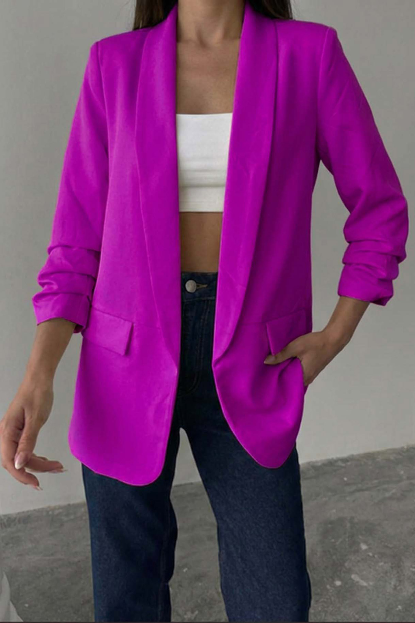 Σακάκι Blazer με Σούρα στα Μανίκια. Διαθέτει ανοιχτό μπροστινό μέρος χωρίς κουμπιά για ένα πιο χαλαρό στυλ.