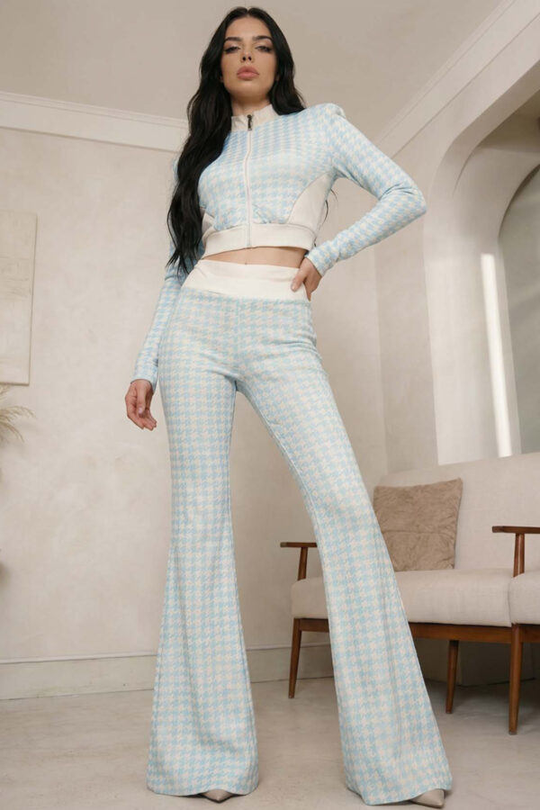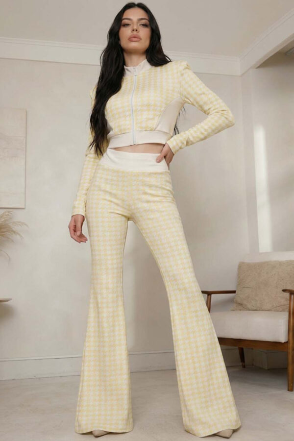 Σετ πουκάμισο κοτλε, κλείνει με κουμπιά μπροστά.Παντελόνα ψηλόμεση σε ίσια γραμμή με τσέπες και κορδόνι στη μέση.