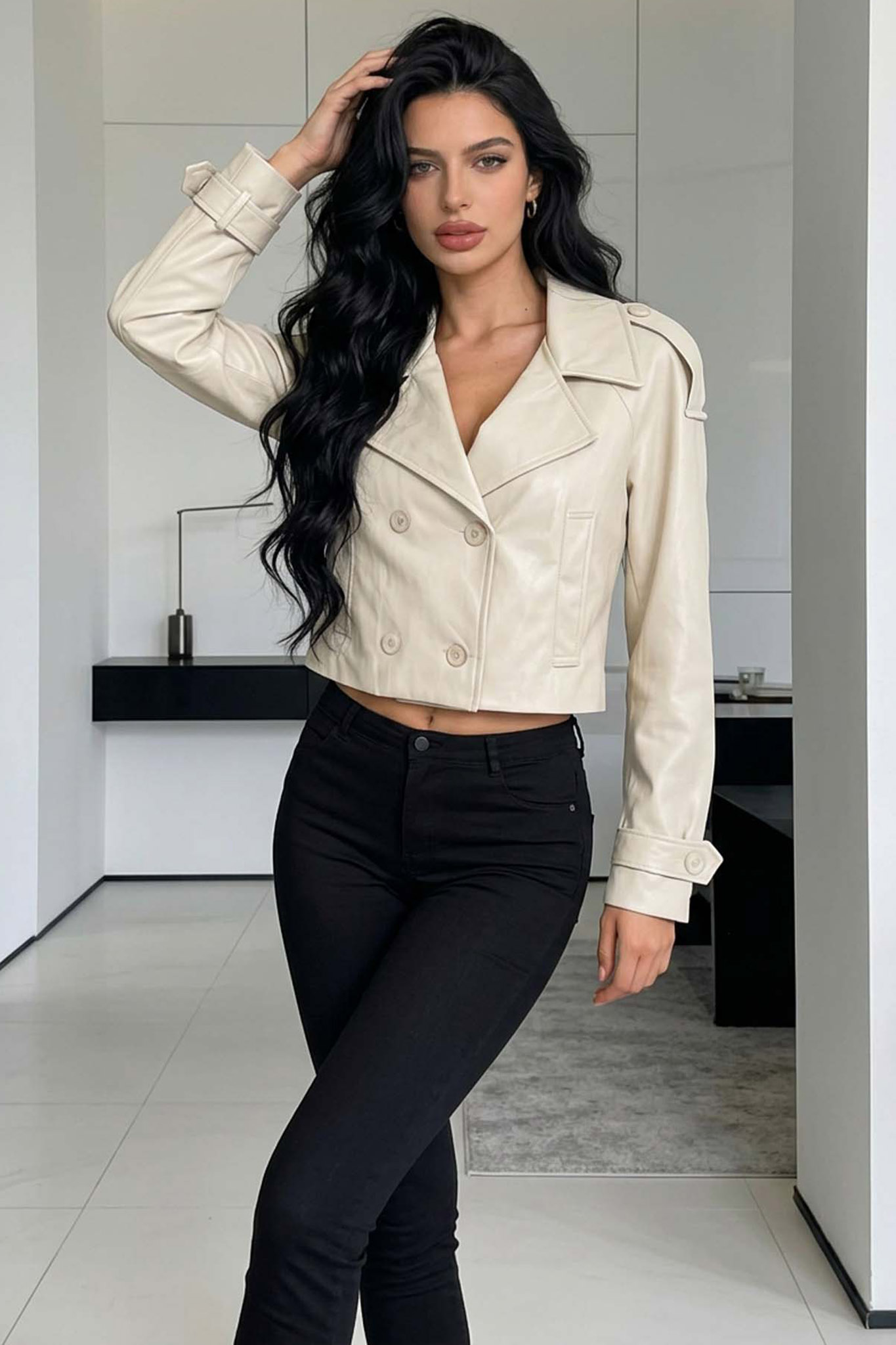 Liamκοντό τζάκετ με σταυρωτό κούμπωμα εκρού