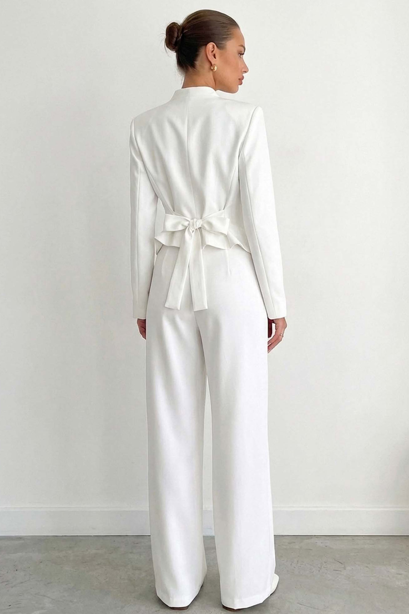 Σετ σακάκι παντελόνι με μυτερό τελείωμα και δέσιμο στο πίσω μέρος της μέσης που προσδίδει μια ιδιαίτερη λεπτομέρεια!