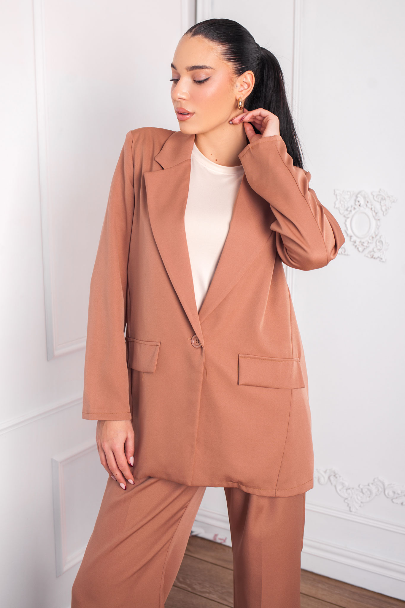 Liliumσετ σακάκι παντελόνι κάμελ