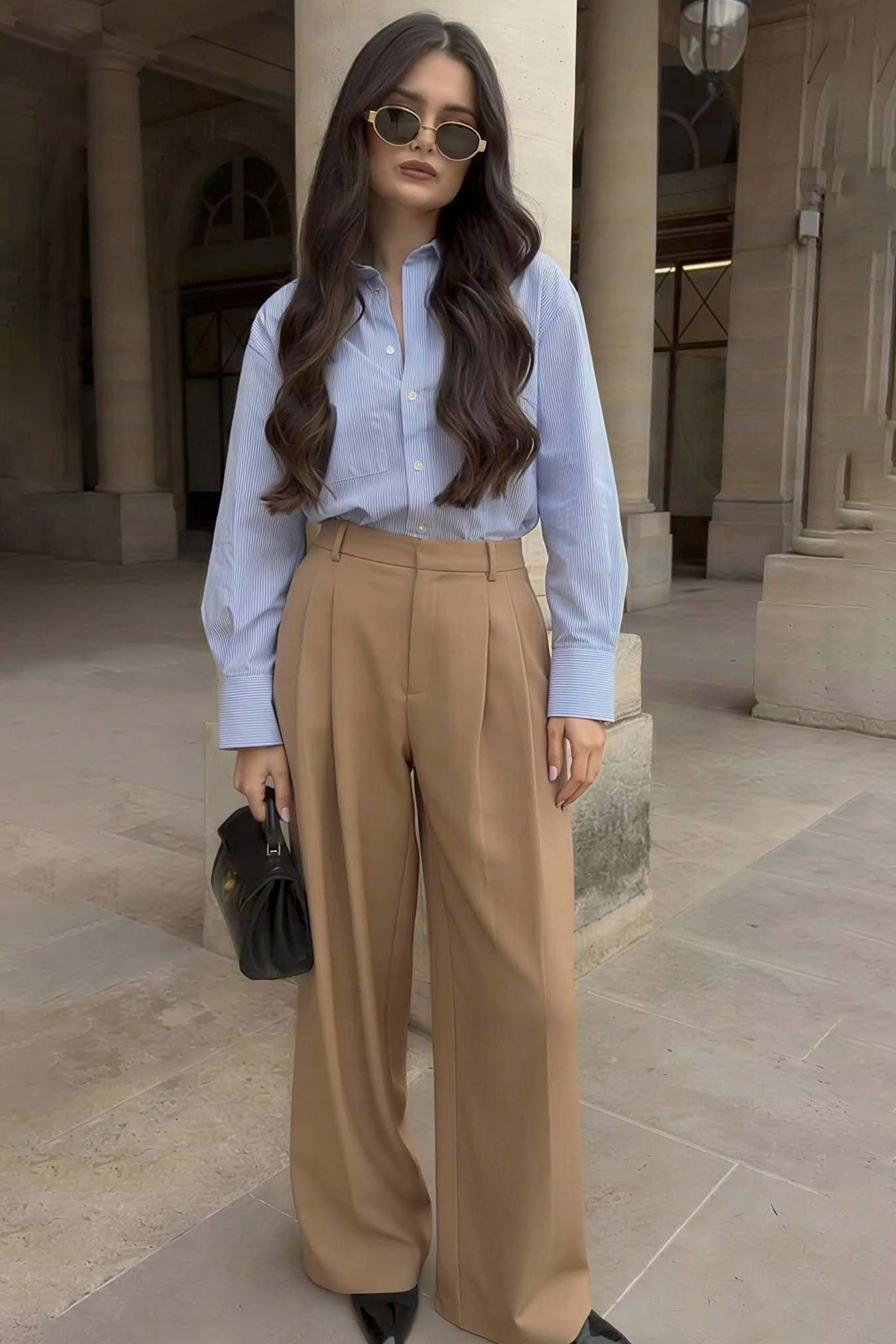 Ψηλόμεση παντελόνα σε άνετη γραμμή,ιδανική για να προσφέρει στυλ και ελευθερία κινήσεων από το γραφείο μέχρι τη βραδινή σας έξοδο.