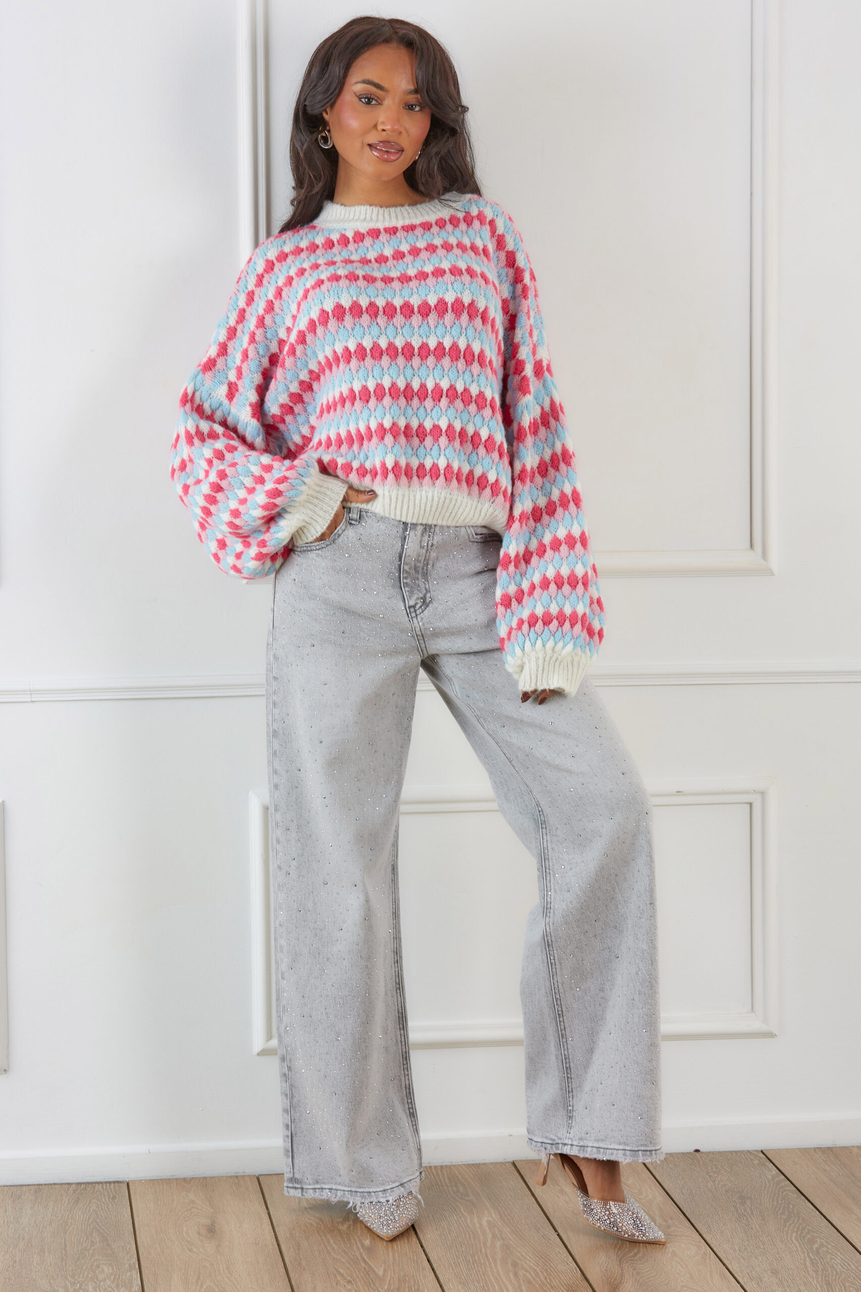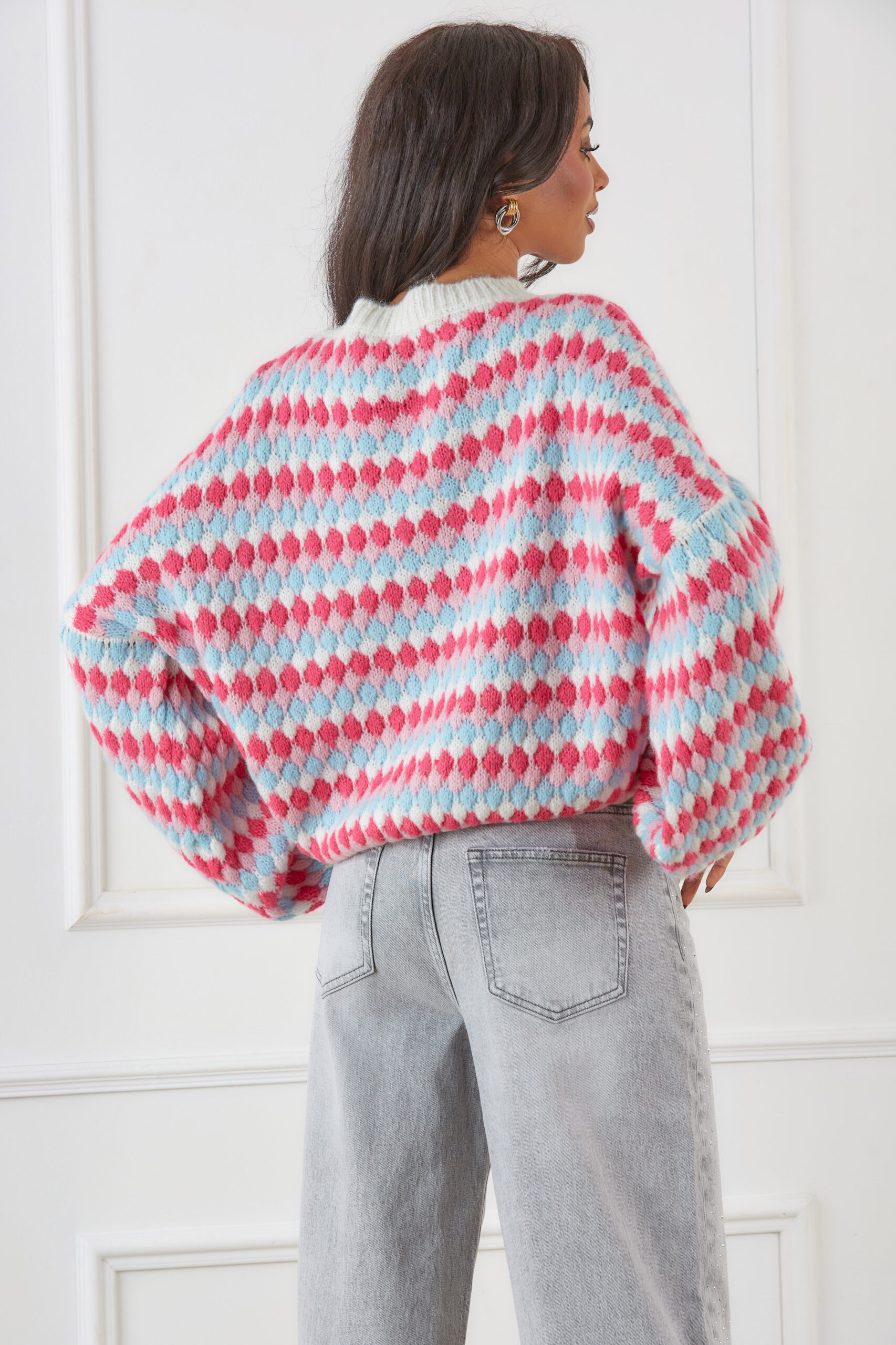 Πλεκτό πουλόβερ με το ιδιαίτερο ανάγλυφο μοτίβο είναι η πιο cozy και στυλάτη επιλογή για τις κρύες μέρες. Διαθέτει άνετη γραμμή (oversized), κλασική στρογγυλή λαιμόκοψη και είναι φτιαγμένο από απαλή πλέξη. Μήκος 55cm, στήθος 80cm, μανίκι 55cm.