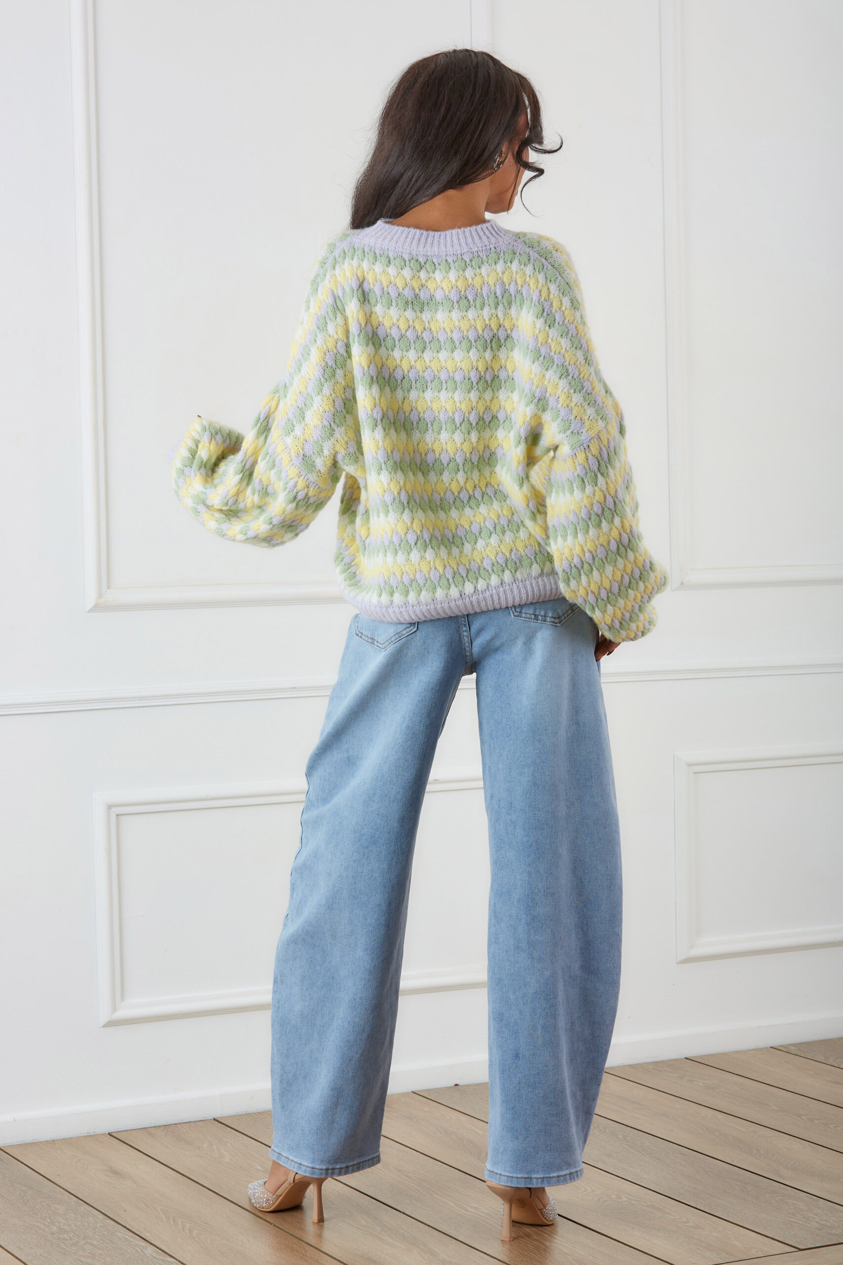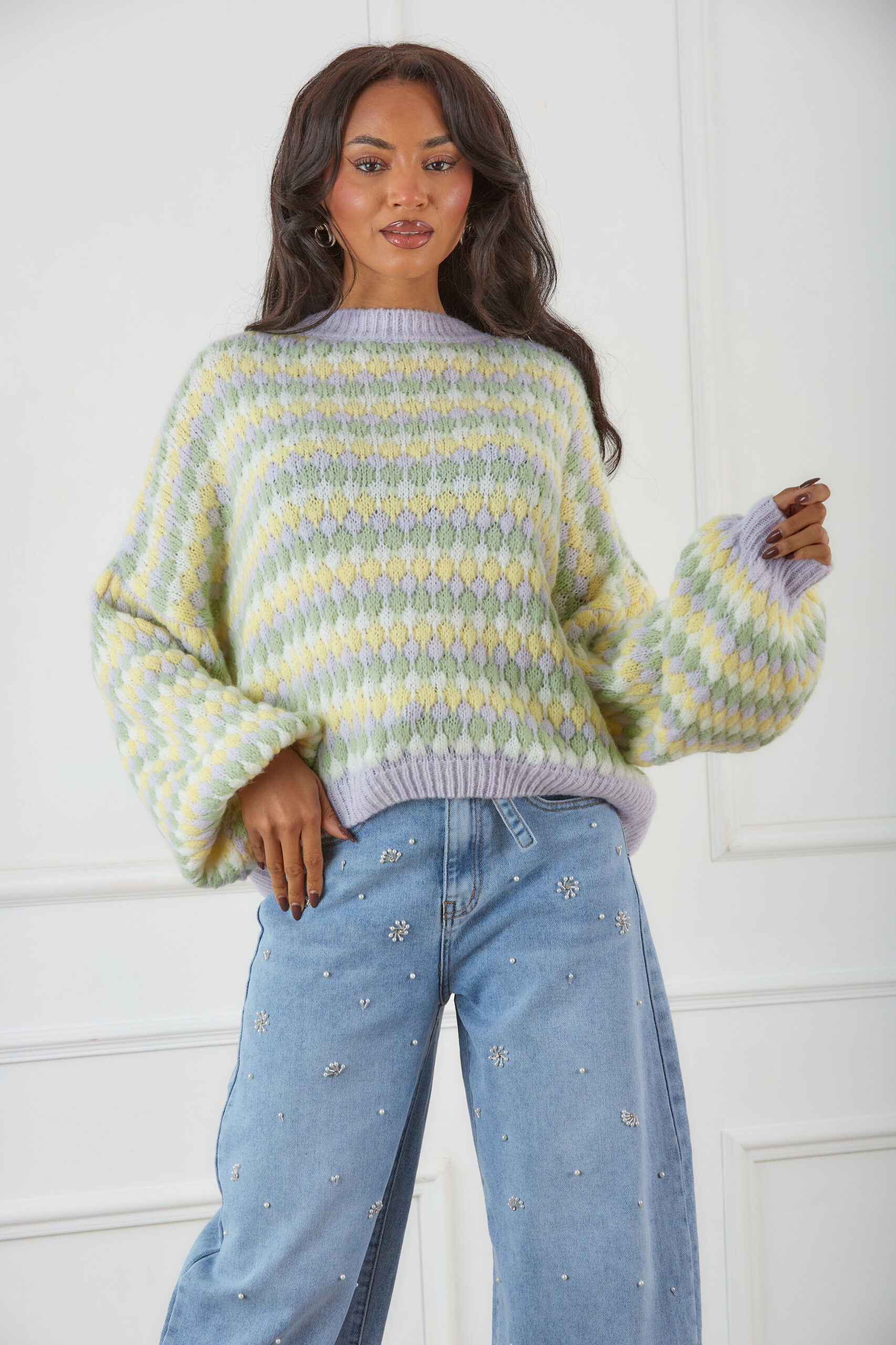 Πλεκτό πουλόβερ με το ιδιαίτερο ανάγλυφο μοτίβο είναι η πιο cozy και στυλάτη επιλογή για τις κρύες μέρες. Διαθέτει άνετη γραμμή (oversized), κλασική στρογγυλή λαιμόκοψη και είναι φτιαγμένο από απαλή πλέξη. Μήκος 55cm, στήθος 80cm, μανίκι 55cm.