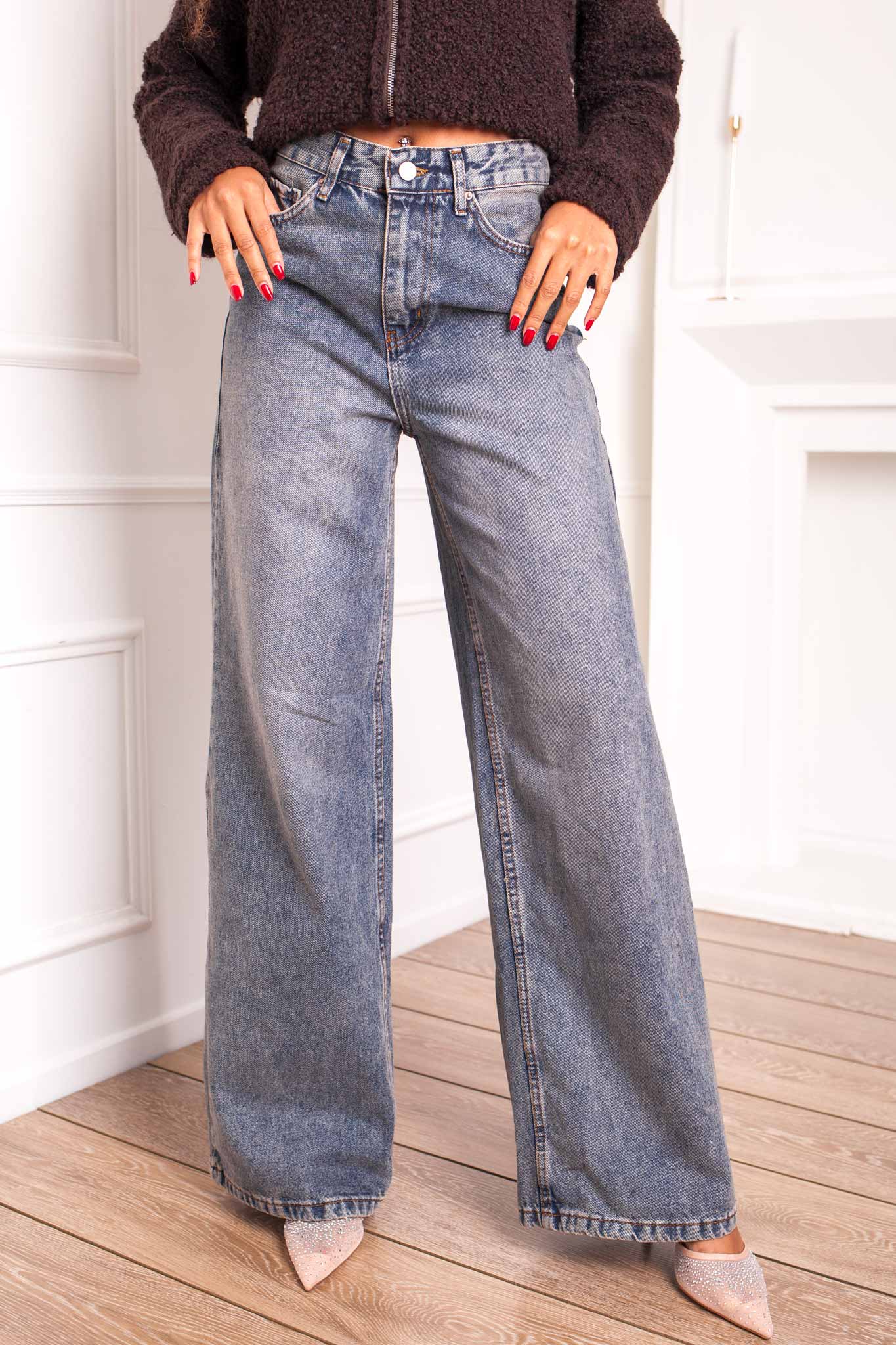 Τζιν παντελόνι σε όμορφο χρωματισμό και κλείσιμο με κουμπί, άνετη γραμμή. Μήκος 110cm, μέση 35cm.
