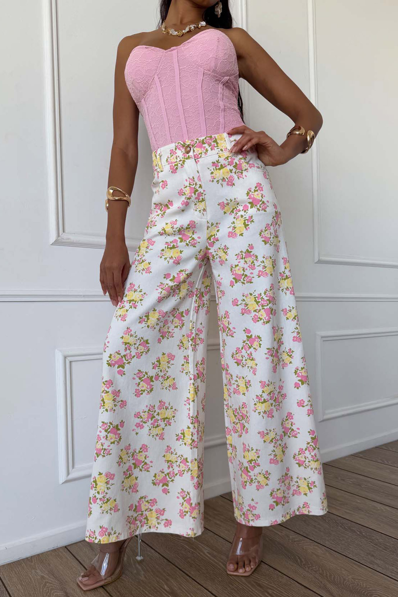 Lisseaπαντελόνι φλοράλ εκρού