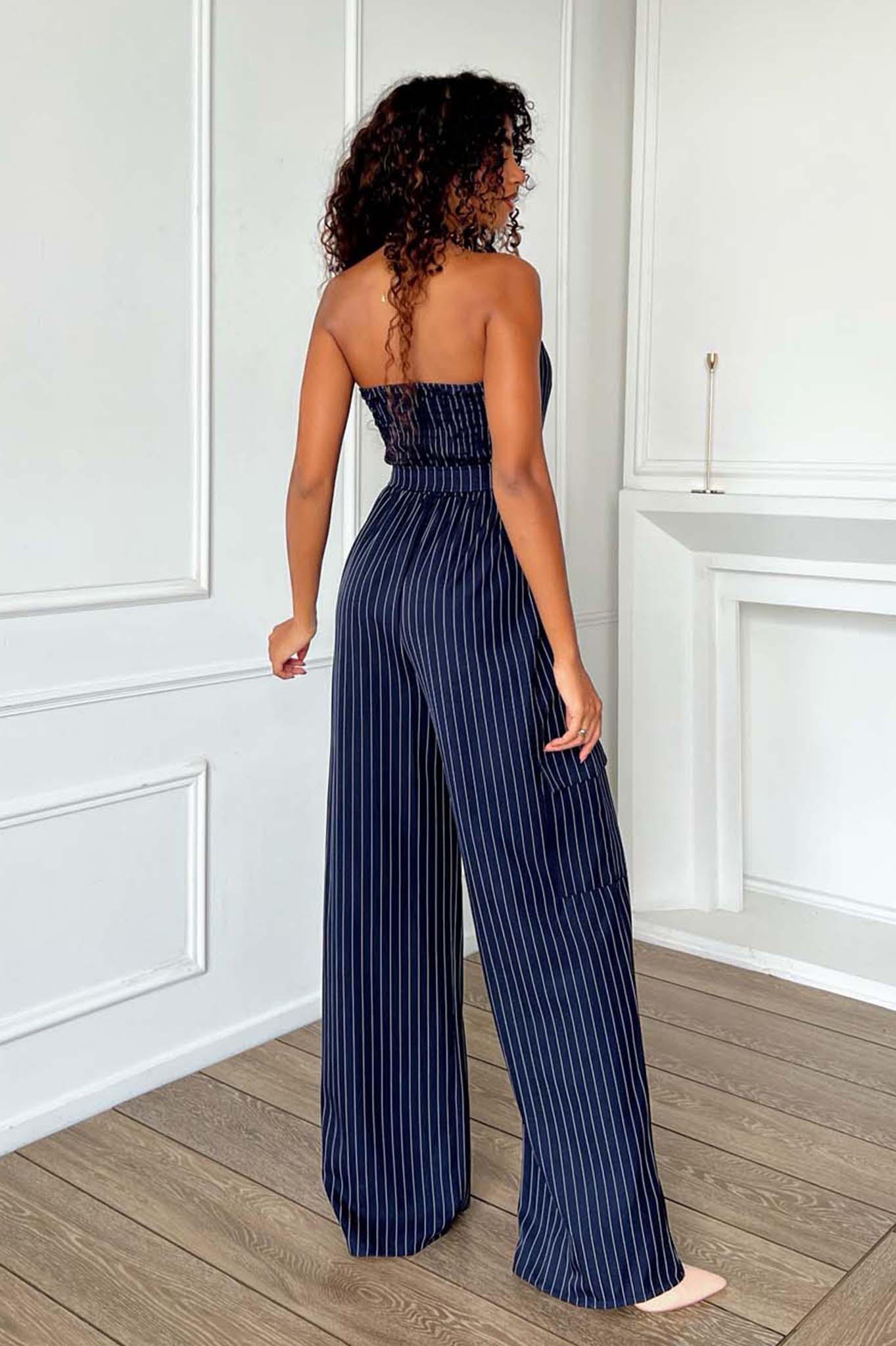 Ολόσωμη φόρμα ριγέ με ζωνάκι στη μέση για να αναδεικνύει κάθε σιλουέτα. Διαθέτει λάστιχο στην πλάτη για πιο άνετη εφαρμογή. Μήκος 133cm, στήθος 62cm.