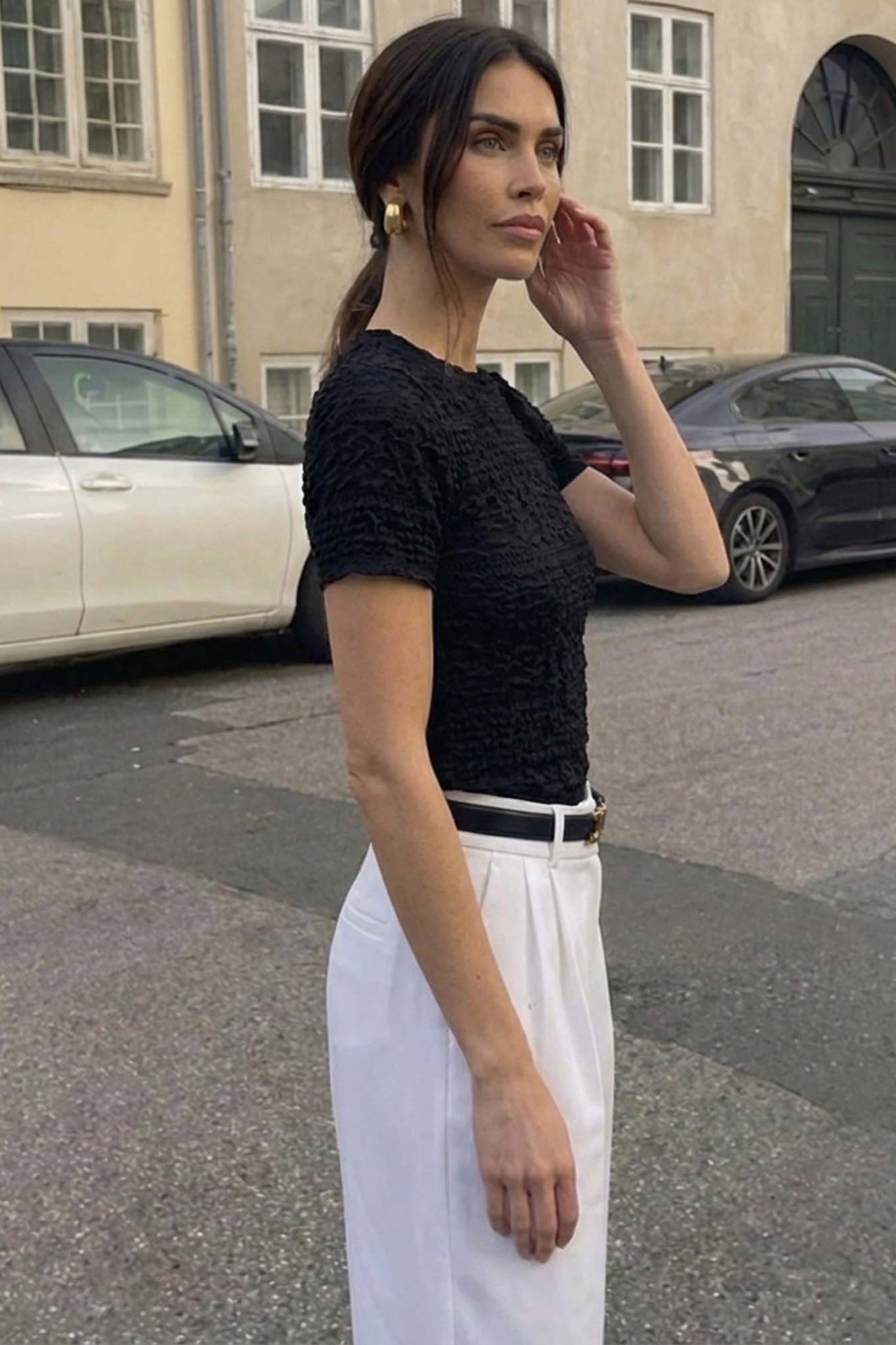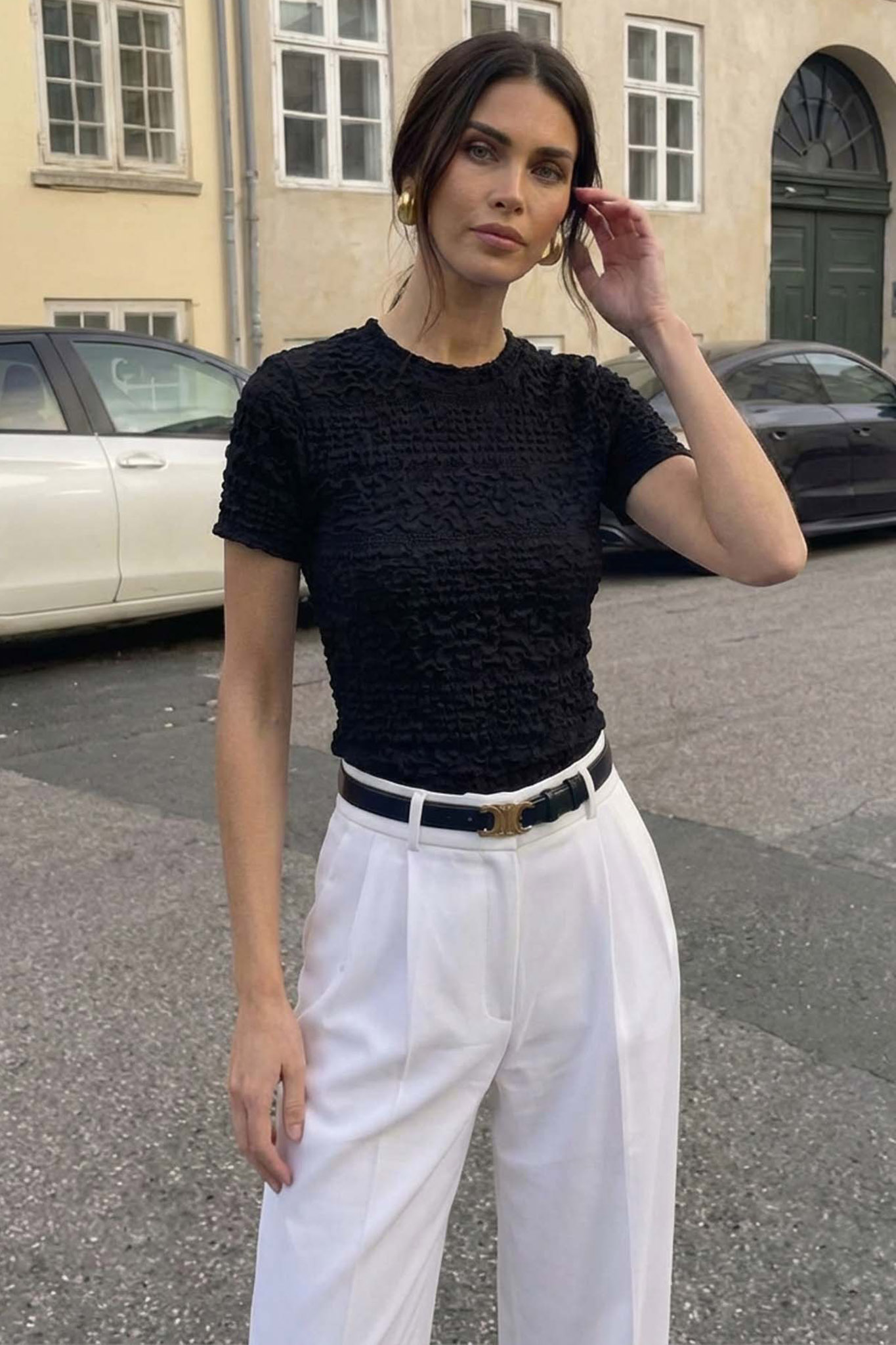 Κοντομάνικη μπλούζα με υφή γκοφρέ. Διαθέτει ανάγλυφη, ελαστική ύφανση που δημιουργεί ένα εντυπωσιακό οπτικό αποτέλεσμα και χαρίζει θηλυκότητα.
