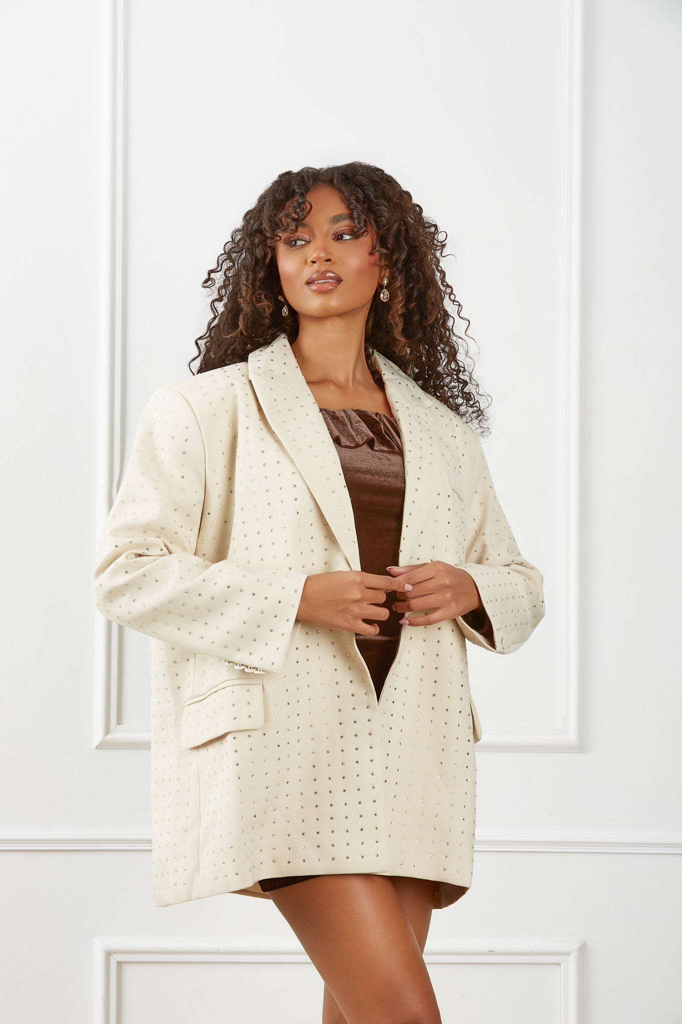 Εντυπωσιακό σακάκι με στρας all over. ’νετη γραμμή. Μήκος 72 cm, μανίκι 57 cm, στήθος 58cm.