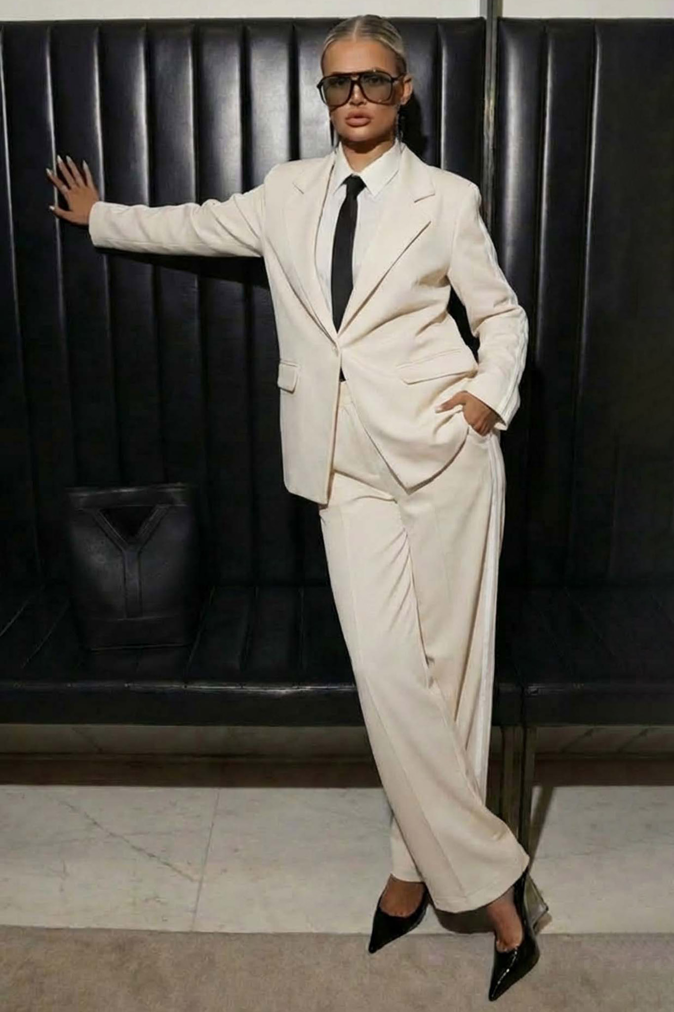 Lumiereσετ σακάκι παντελόνι με ρίγες στο πλάι εκρού