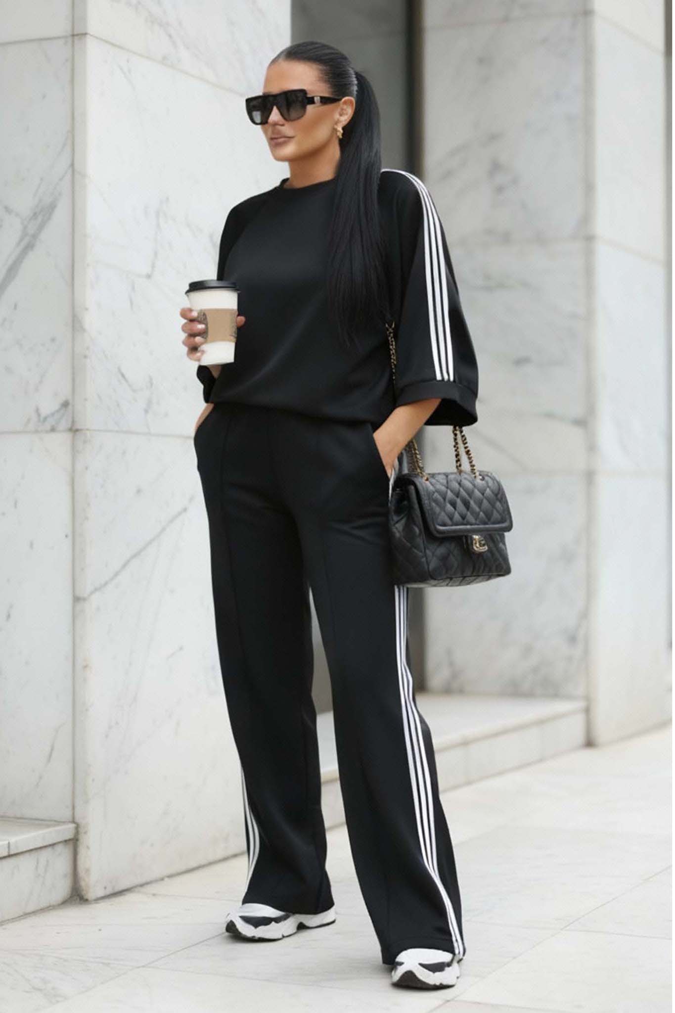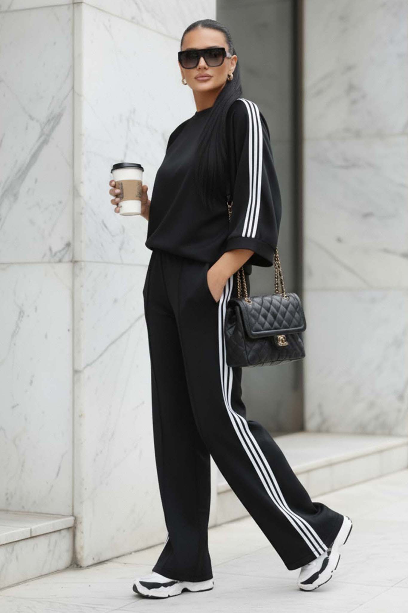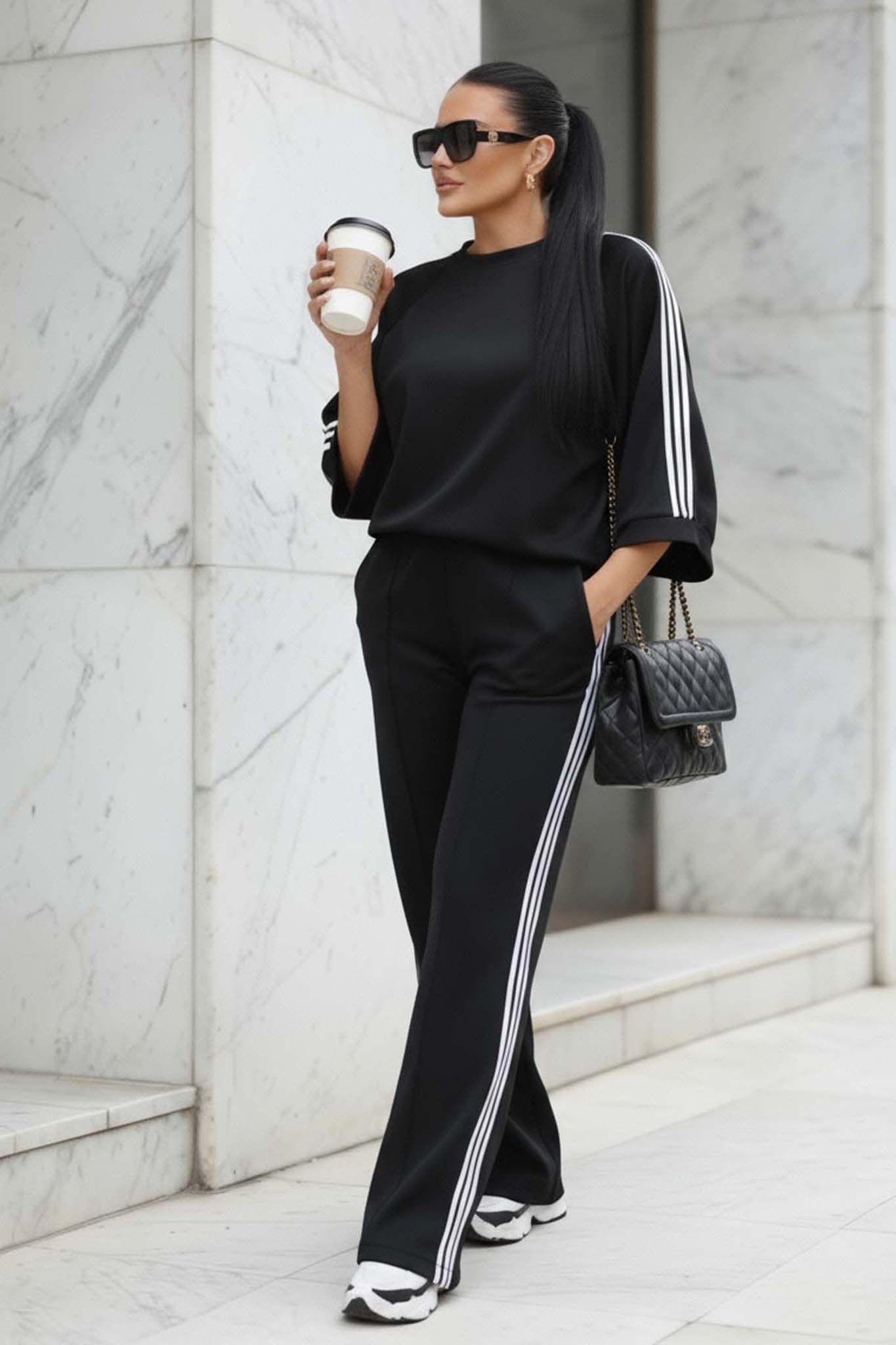 Σετ φόρμας φούτερ με ρίγα στο πλάι και άνετη γραμμή.