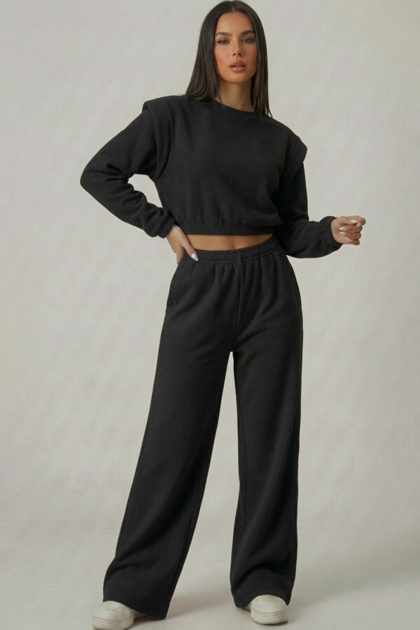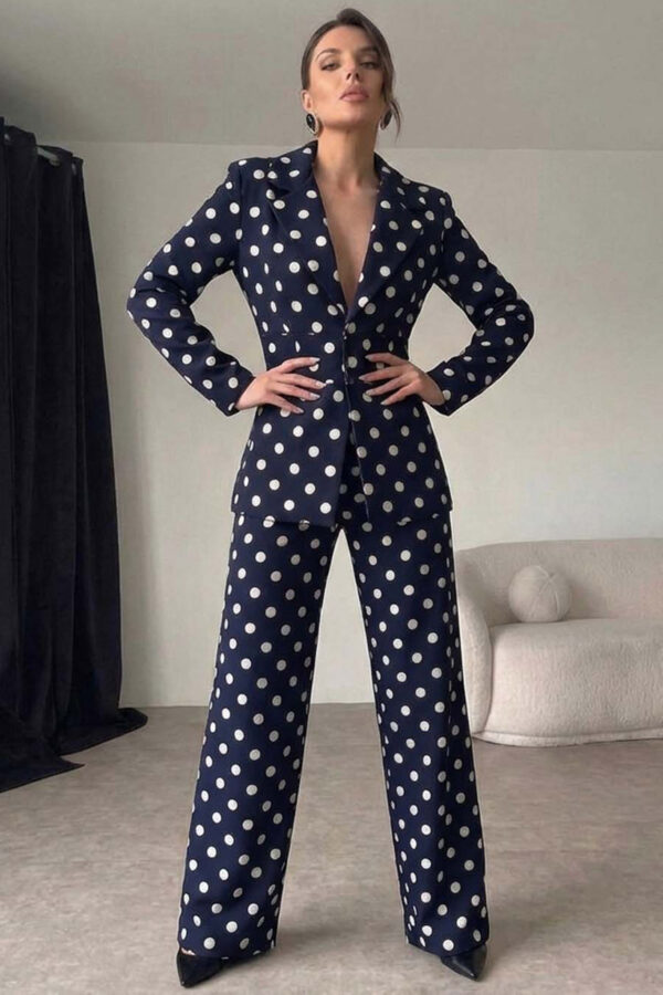 Σετ σακάκι παντελόνι. Το oversized σακάκι με το κλασικό πέτο συνδυάζεται άψογα με την ψηλόμεση παντελόνα σε φαρδιά γραμμή, δημιουργώντας μια στυλάτη σιλουέτα για όλες τις ώρες. Είναι η ιδανική επιλογή για ένα προσεγμένο office look ή μια chic απογευματινή εμφάνιση. Μήκος σακάκι 72cm, στήθος 60cm, μανίκι 62cm, μήκος παντελόνι 110cm, μέση 35cm.