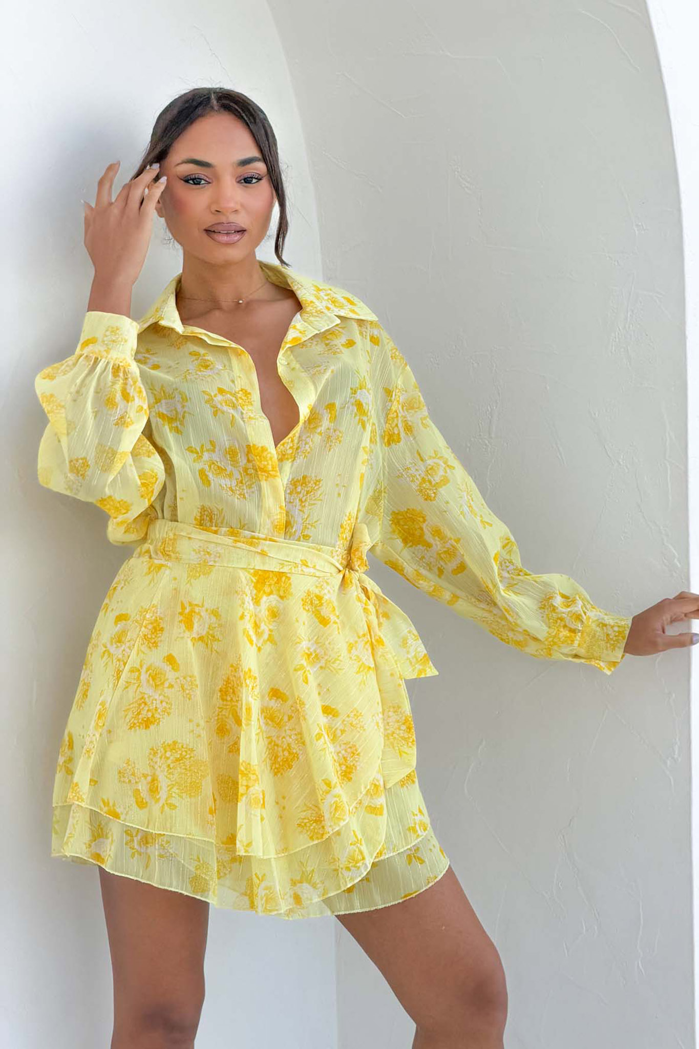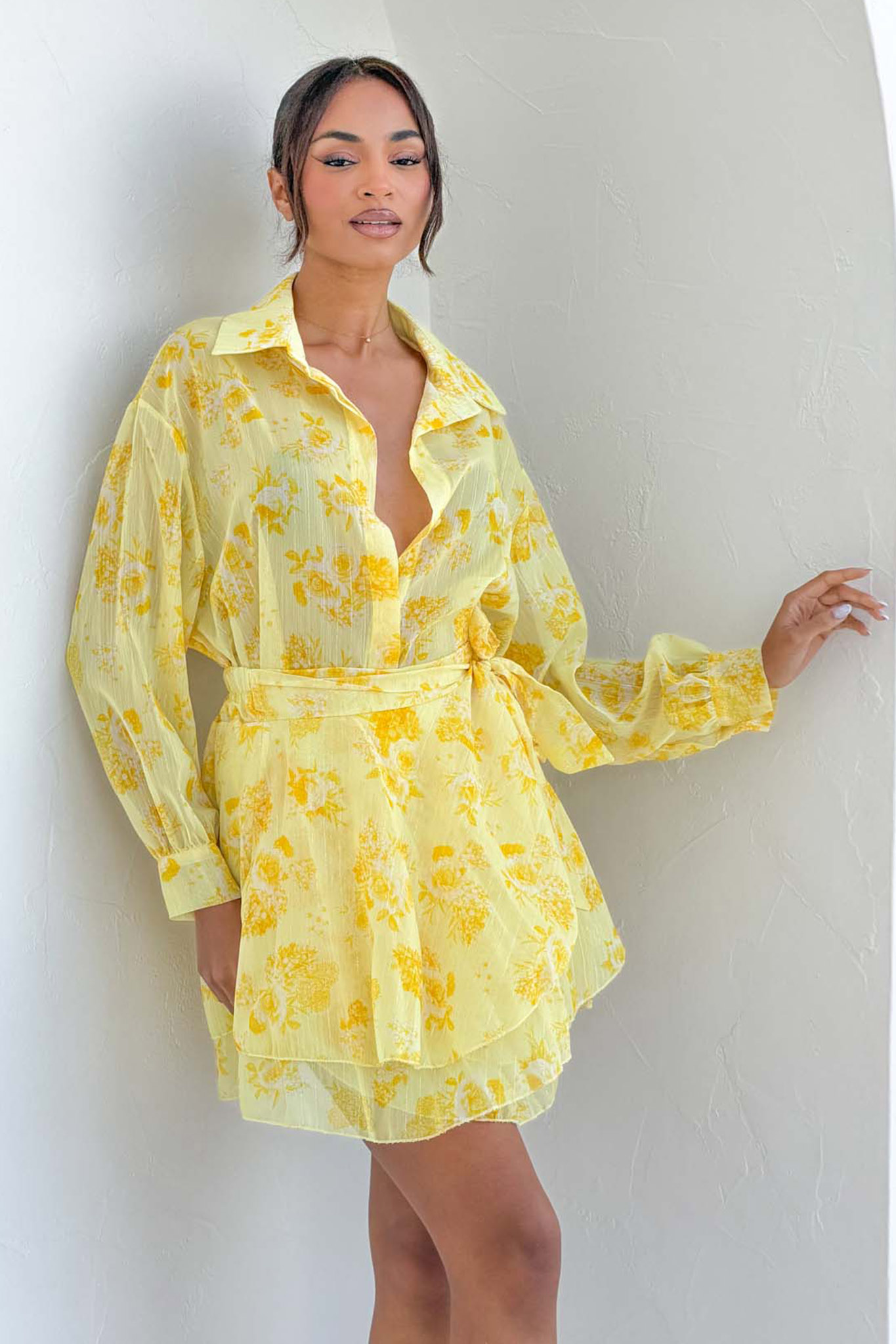 Lyliaσετ μίνι φούστα πουκάμισο φλοράλ κίτρινο