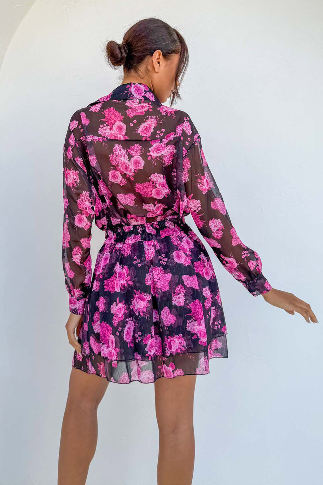 Lyliaσετ μίνι φούστα πουκάμισο φλοράλ μαύρο