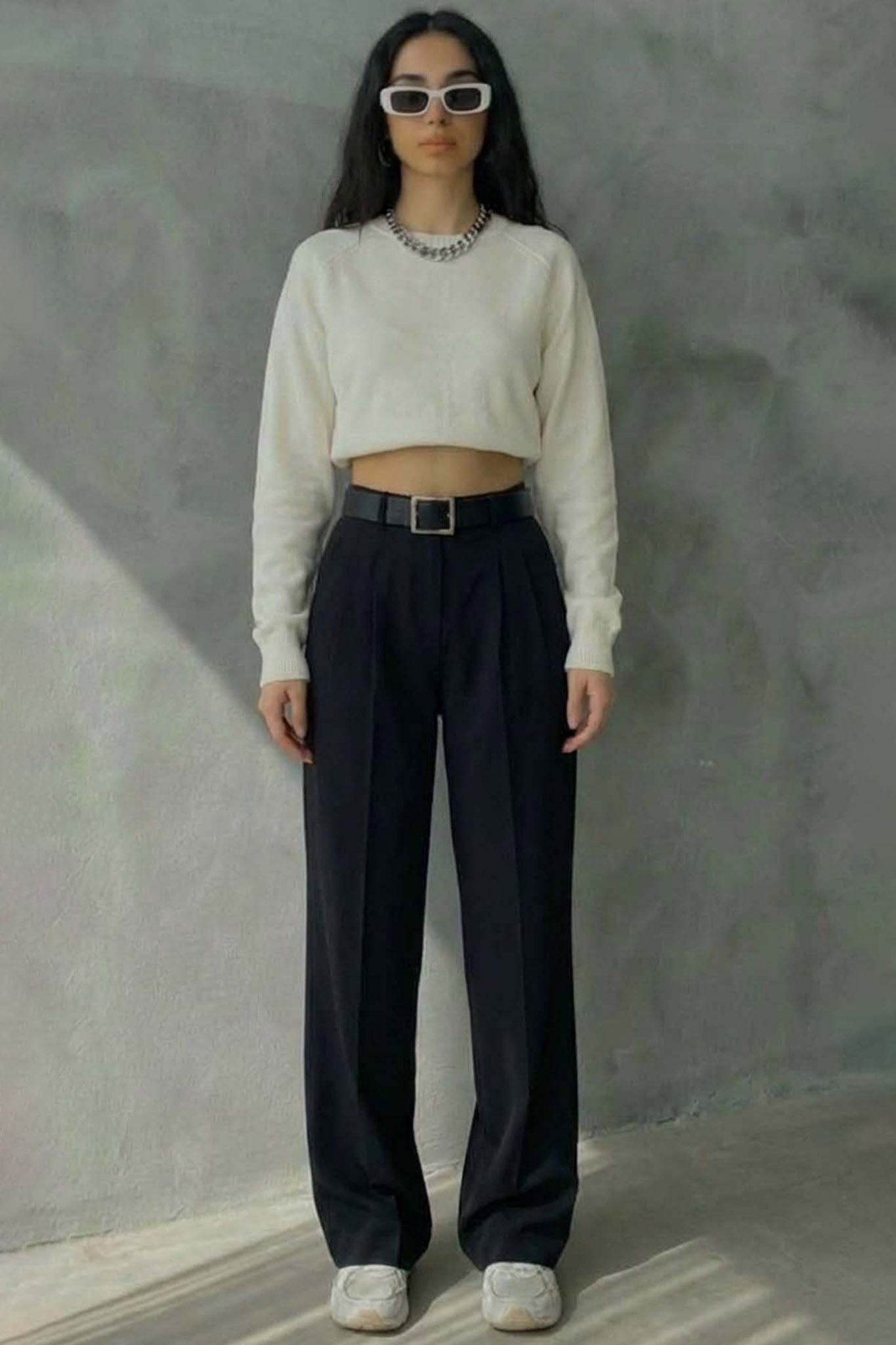 Αυτή η ψηλόμεση υφασμάτινη παντελόνααποτελεί τον ιδανικό συνδυασμό άνεσης και στυλ. Διαθέτει φαρδιά γραμμή που προσφέρει ελευθερία κινήσεων, ενώ οι κομψές πιέτες στο μπροστινό μέρος και οι θηλιές για ζώνη προσθέτουν μια προσεγμένη λεπτομέρεια στη σιλουέτα. Είναι η τέλεια επιλογή για να δημιουργήσετε μοντέρνα looks από το πρωί στο γραφείο μέχρι τις απογευματινές σας βόλτες.