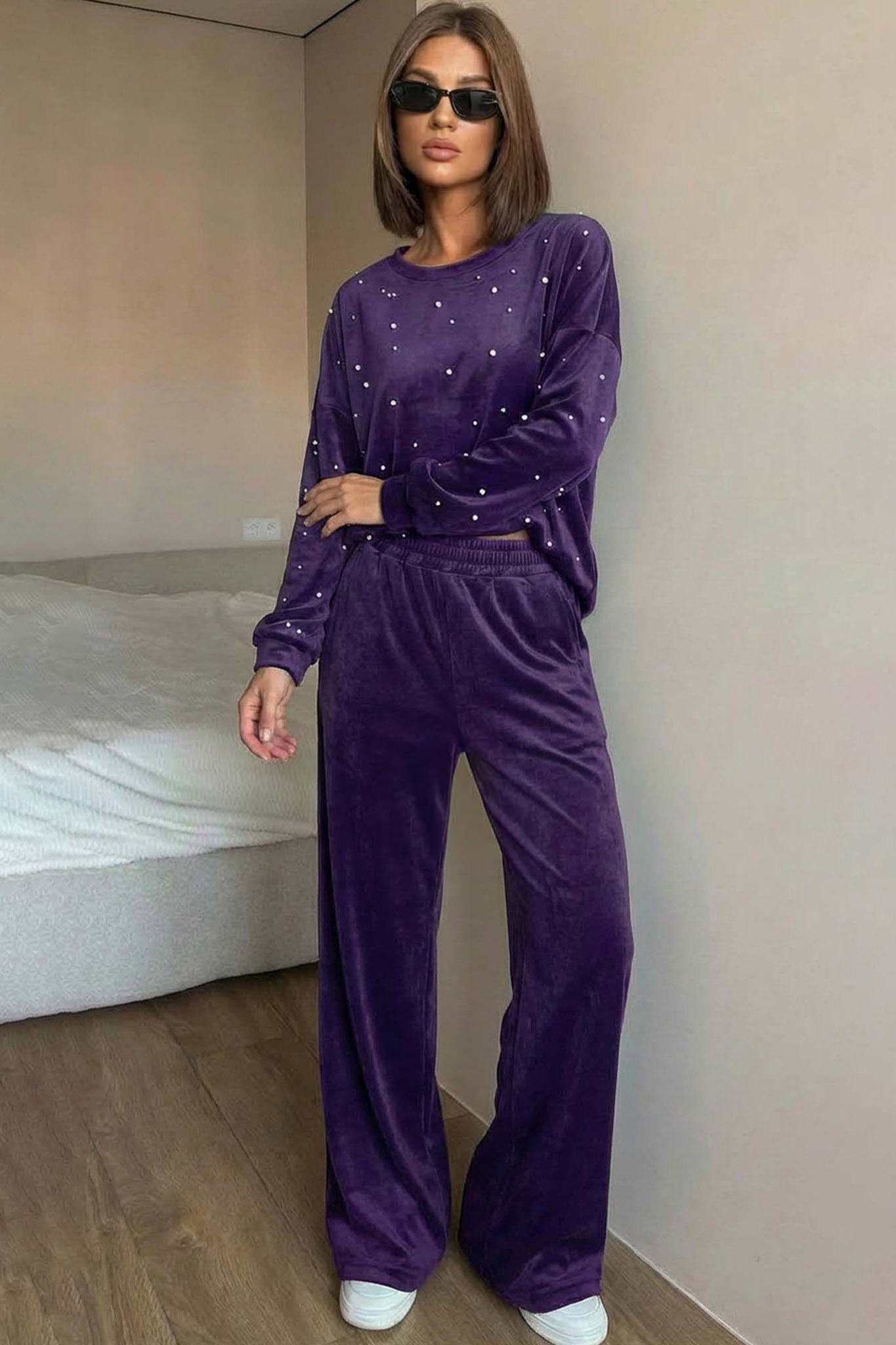 Majorityσετ βελούδινο με διακοσμητικές πέρλες μωβ