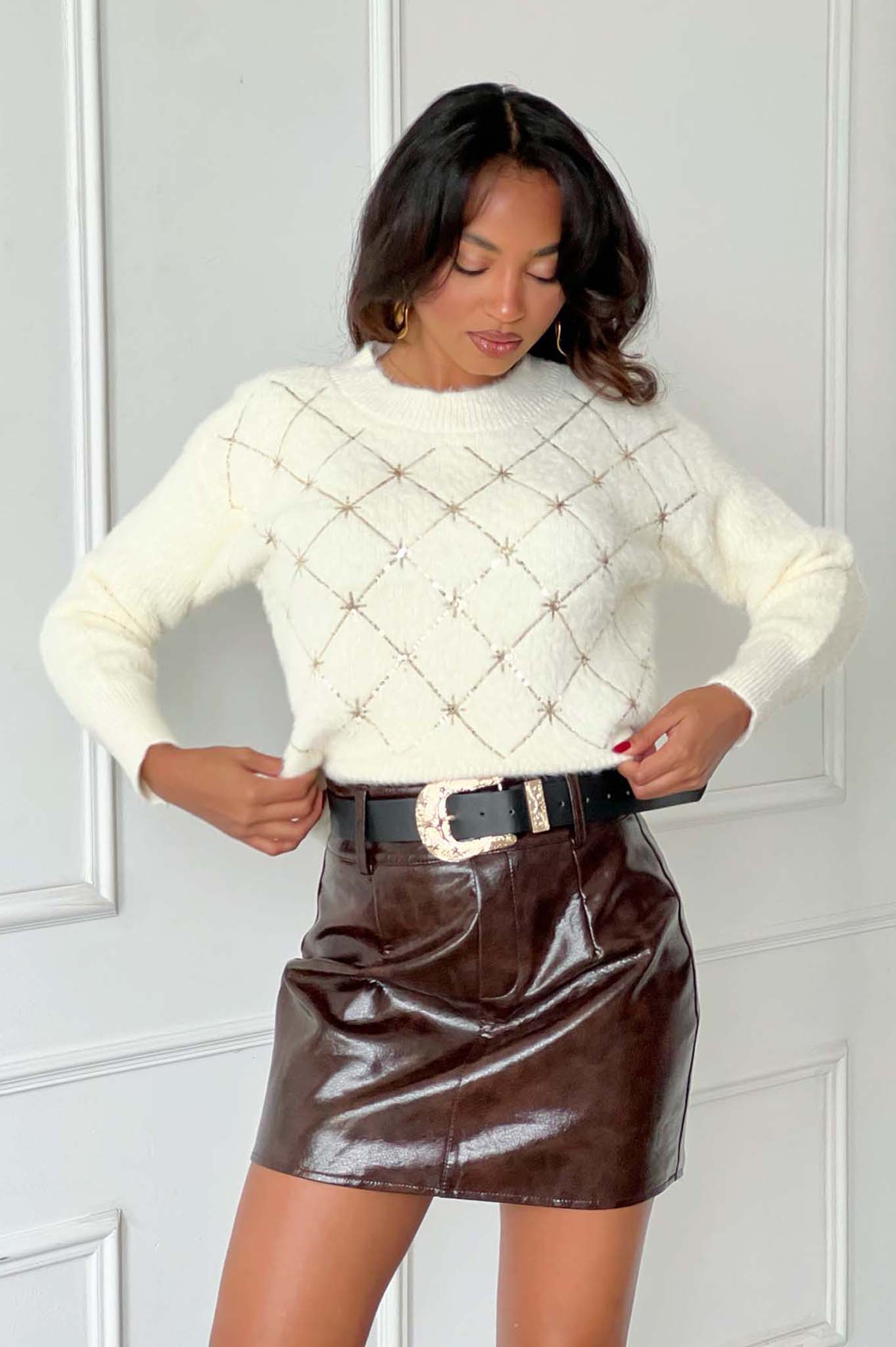 Πλεκτή μακρυμάνικη μπλούζα με λεπτομέρειες από παγέτα. Μήκος 52cm, στήθος 100cm, μανίκι 49cm.