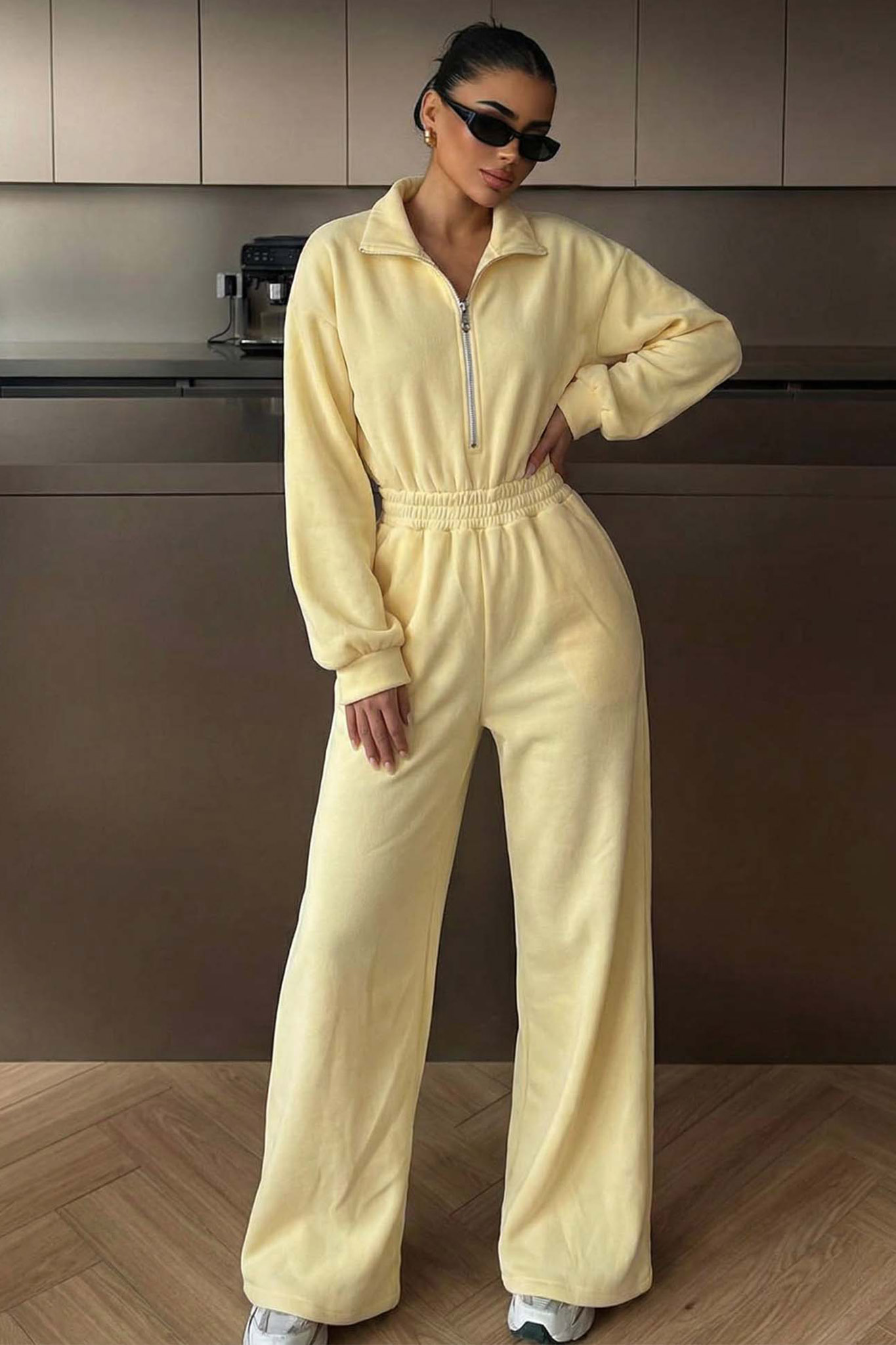 Ολόσωμη Φόρμα με Φερμουάρ. Σχεδιασμένη για να προσφέρει την απόλυτη ισορροπία μεταξύ άνεσης και στυλ, είναι ιδανική τόσο για χαλαρές βόλτες όσο και για casual chic εμφανίσεις.