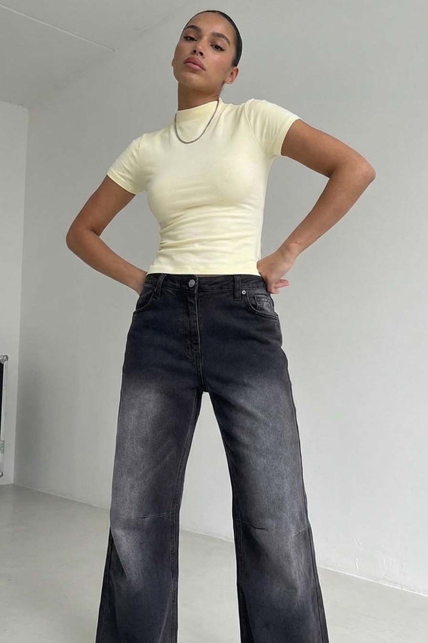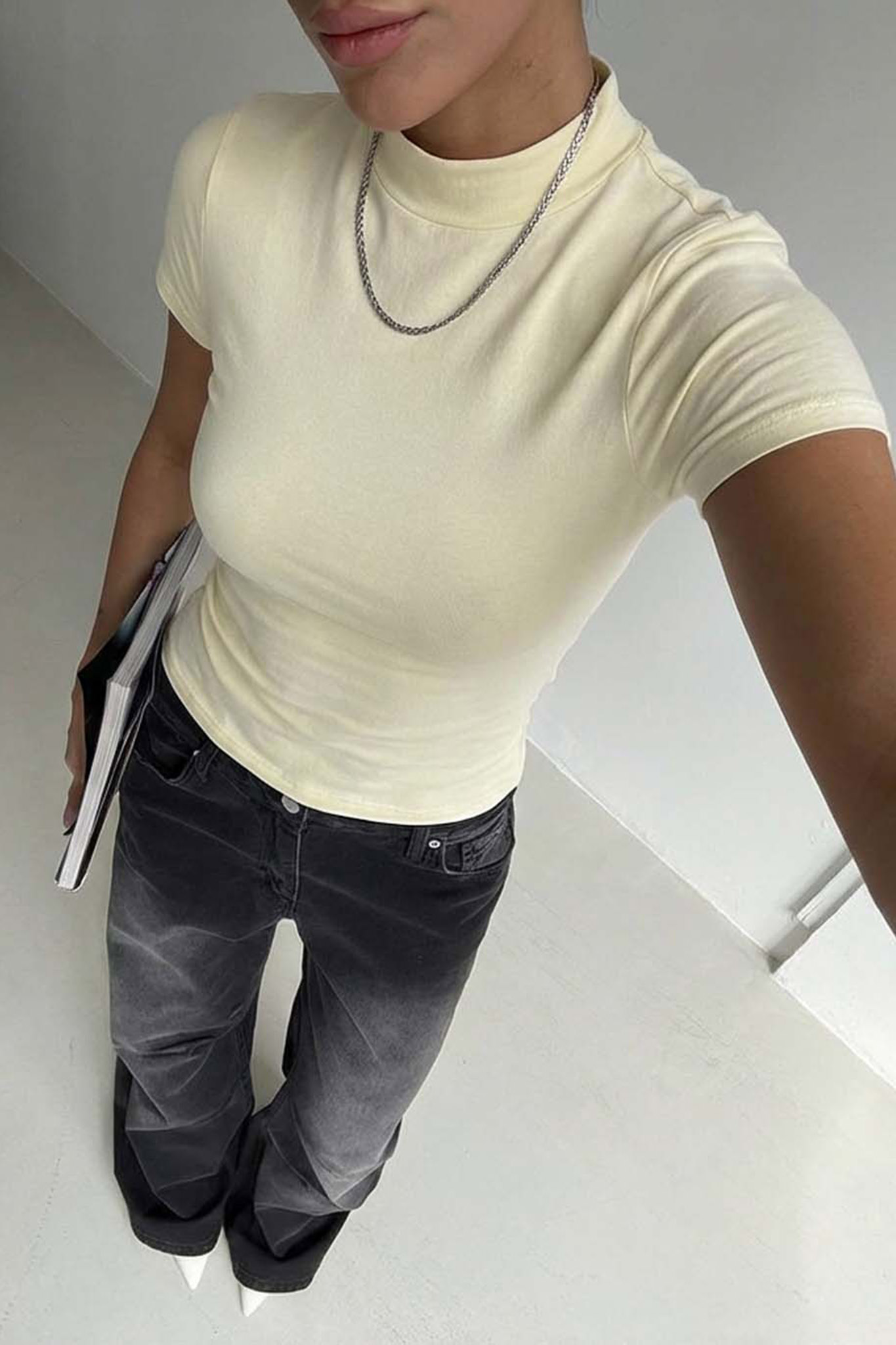 Κοντομάνικο τοπ με ψηλό λαιμό. Ιδανικό για καθημερινές εμφανίσεις.