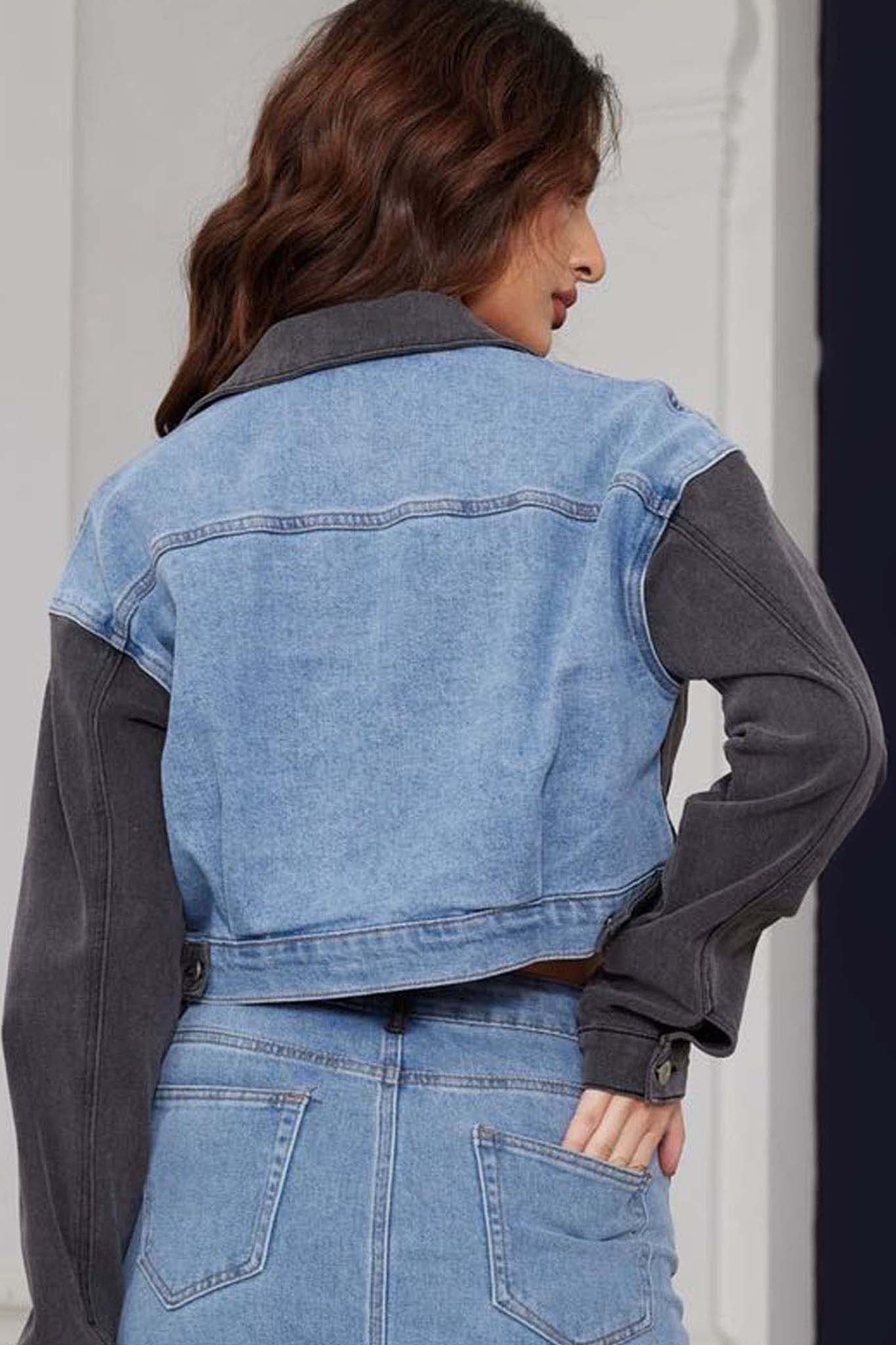 Τζιν τζάκετ crop, με γιακά και κουμπάκια.