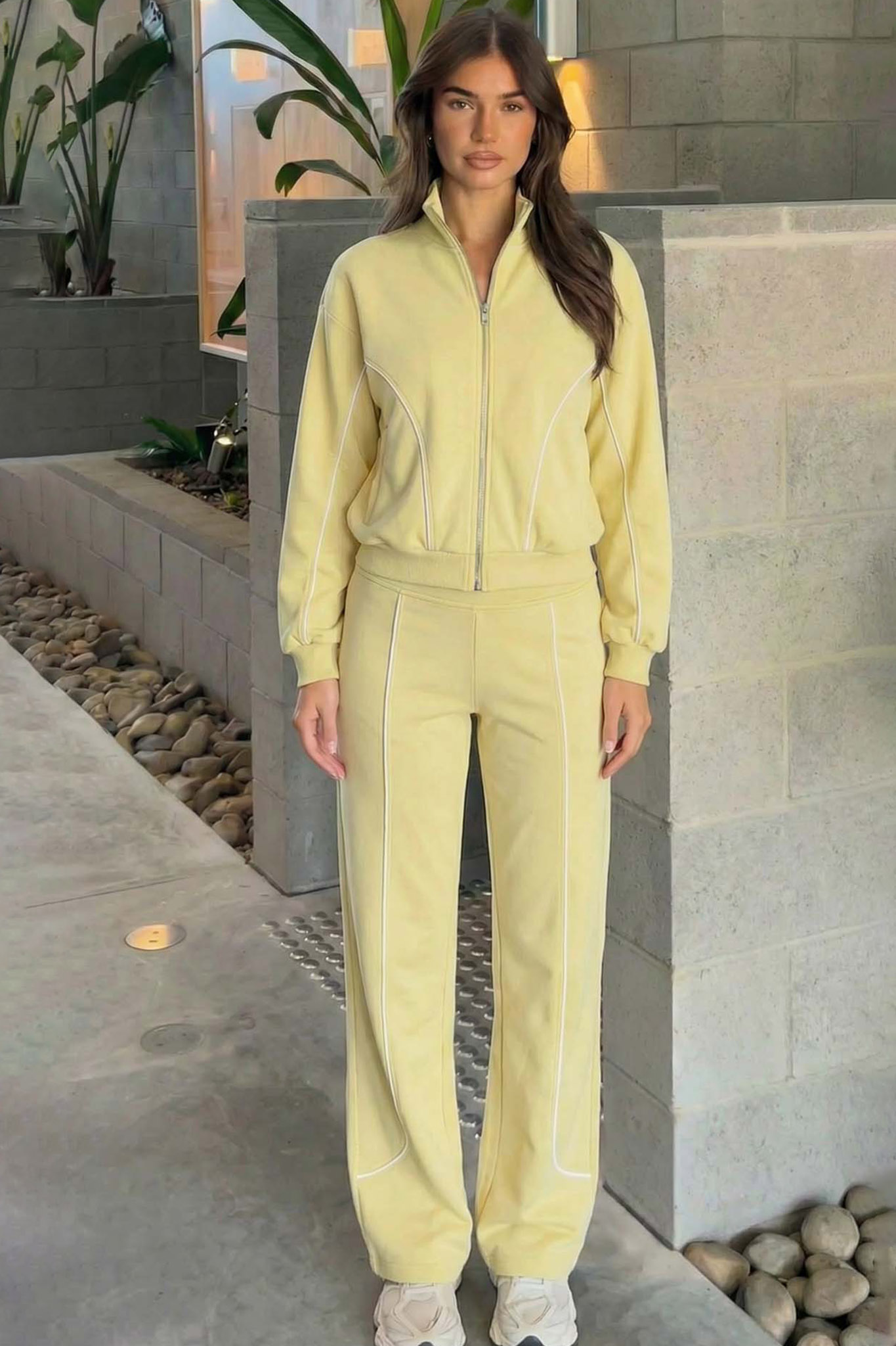 Σετ φόρμα ζακέτα με παντελόνι με διακριτική ρίγα στο πλάι. Ιδανικό για casual καθημερινές εμφανίσεις.