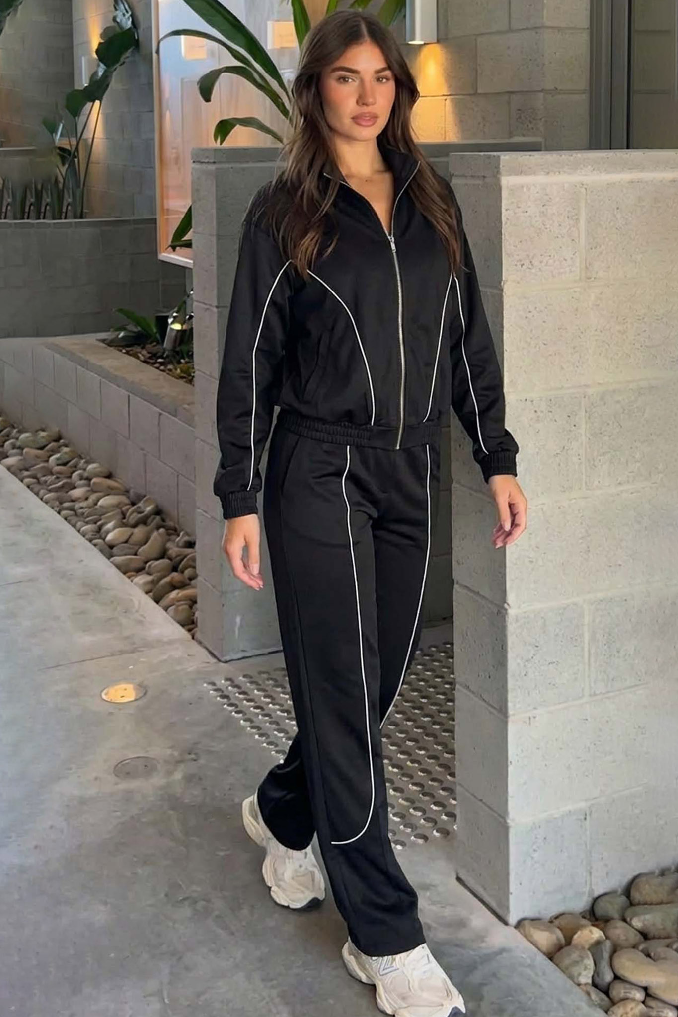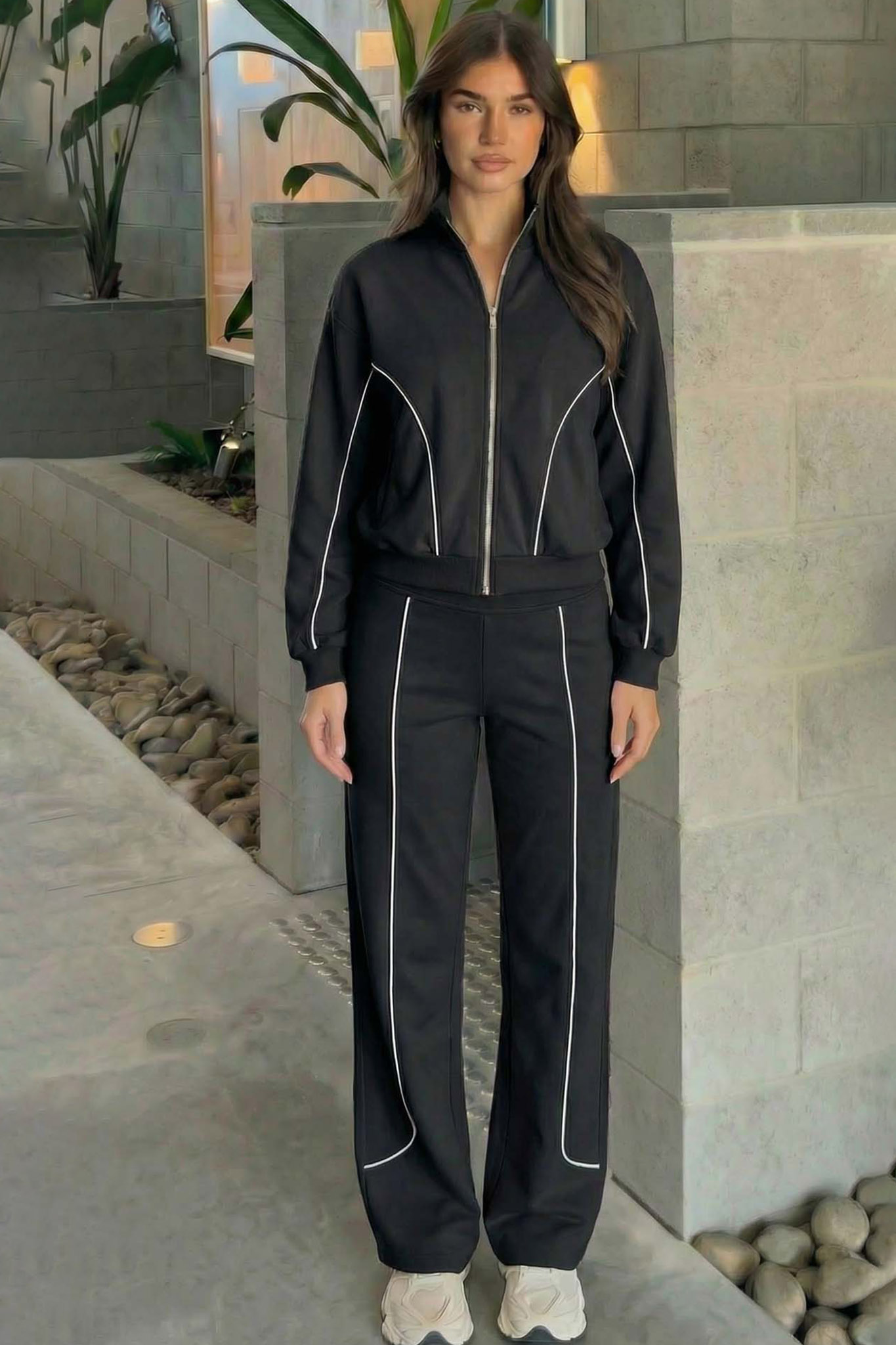 Σετ φόρμα ζακέτα με παντελόνι με διακριτική ρίγα στο πλάι. Ιδανικό για casual καθημερινές εμφανίσεις.