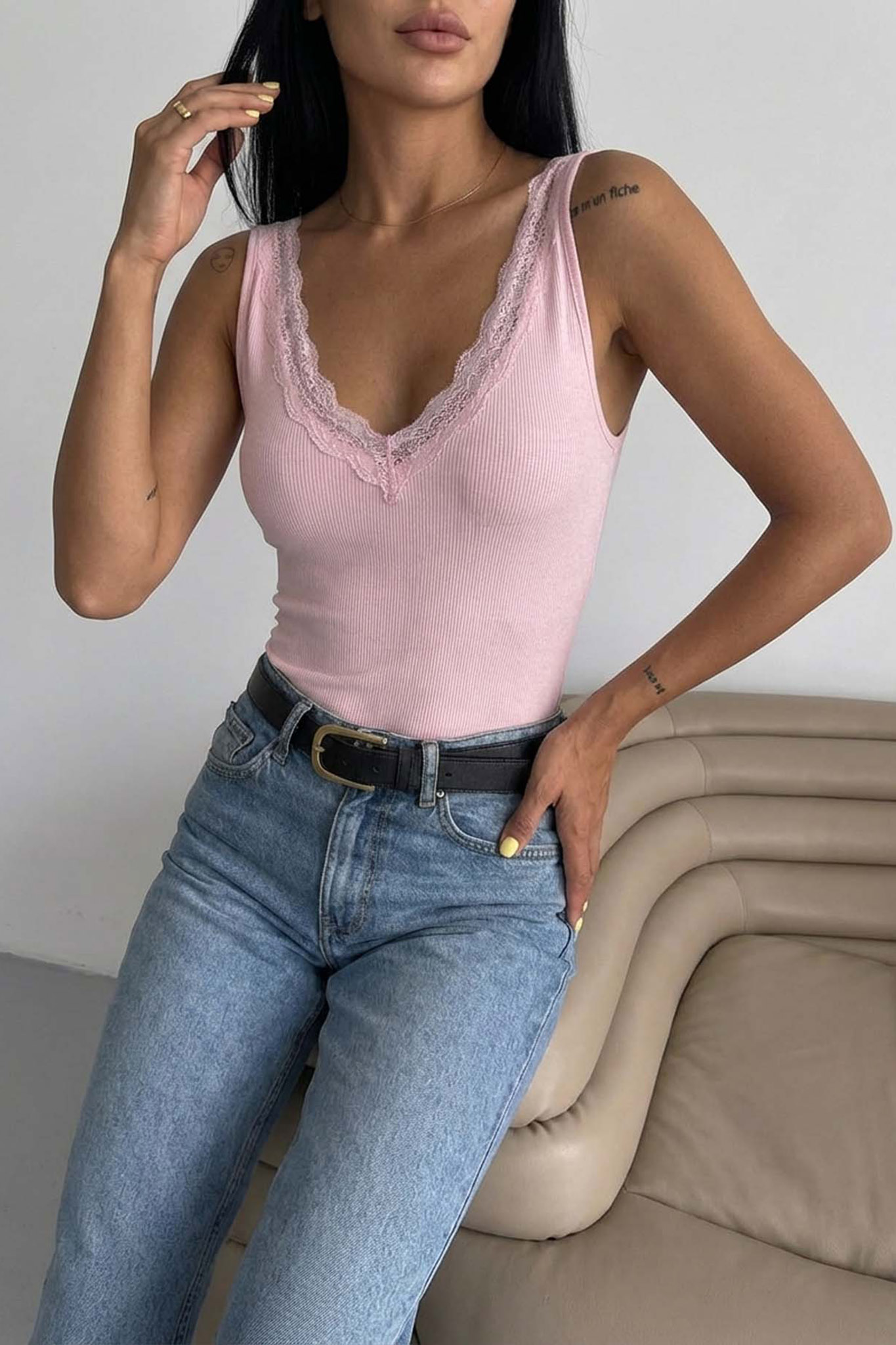 Melankaκορμάκι τοπ με δαντέλα ροζ