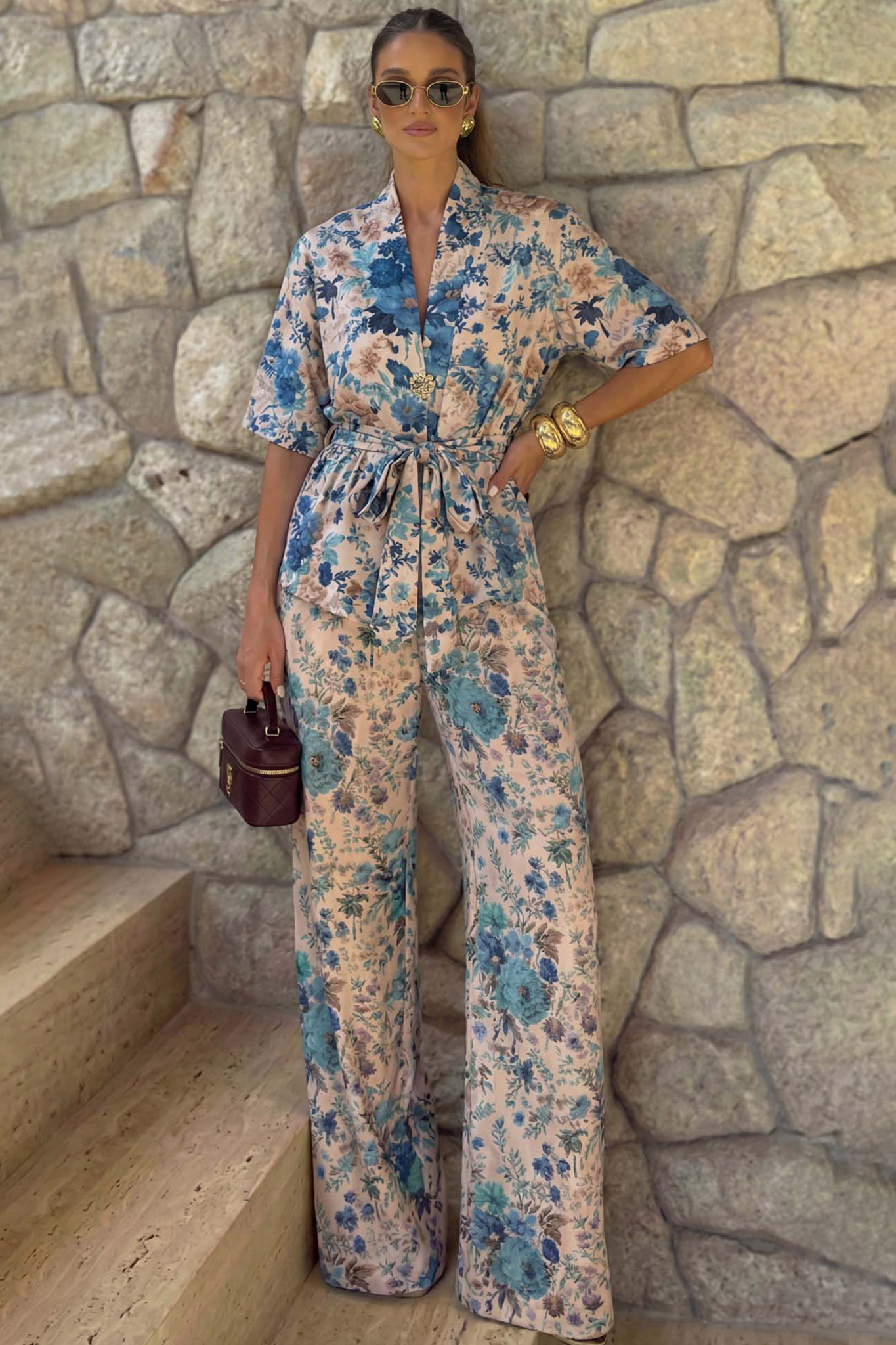 Αυτό το εντυπωσιακό φλοράλ σετ είναι η ιδανική επιλογή για κομψές και θηλυκές εμφανίσεις, από το πρωί έως το βράδυ. Το σύνολο αποτελείται από δύο κομμάτια που συνδυάζουν την άνεση με την υψηλή αισθητική